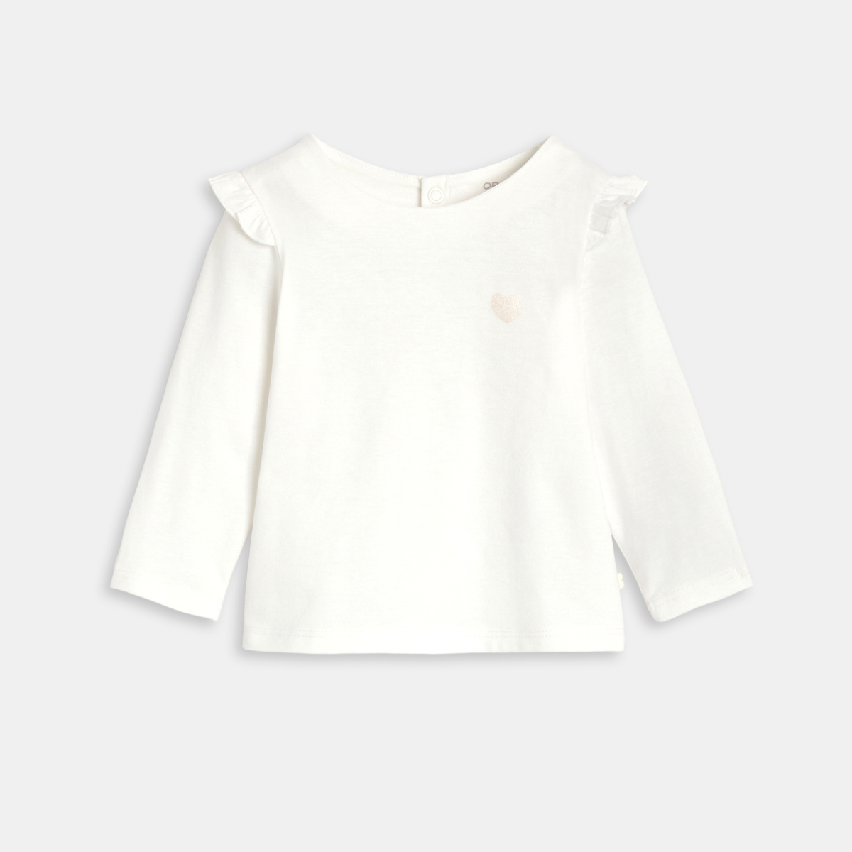 توب بأكمام طويلة وكشكشة، أبيض اللون، للفتاة الصغيرة