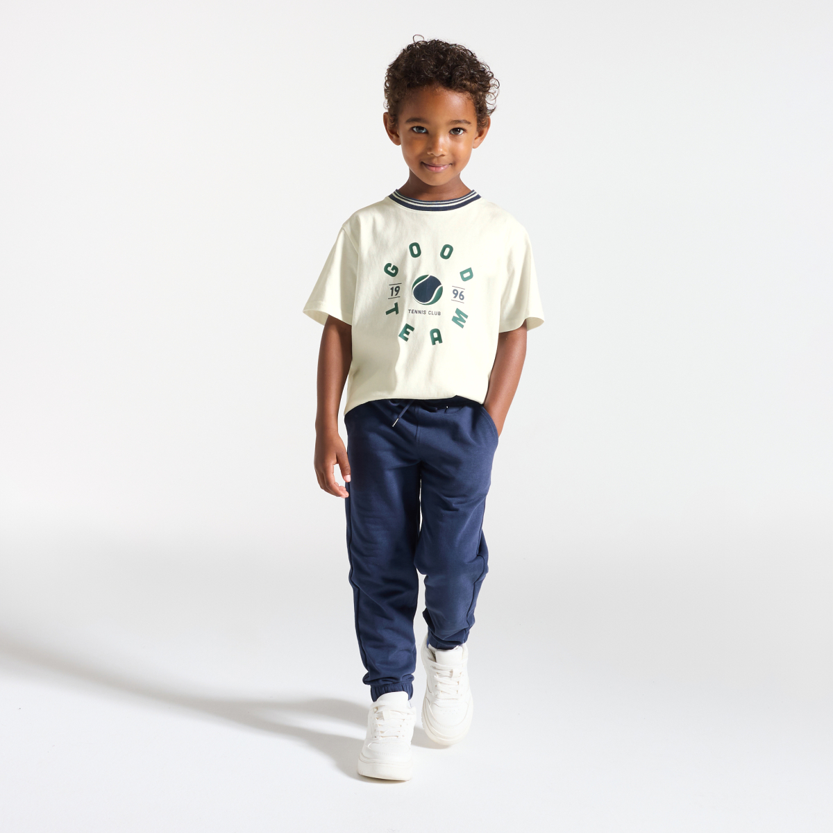 تيشيرت مزين برسالة بأكمام قصيرة، باللون الأبيض للأولاد