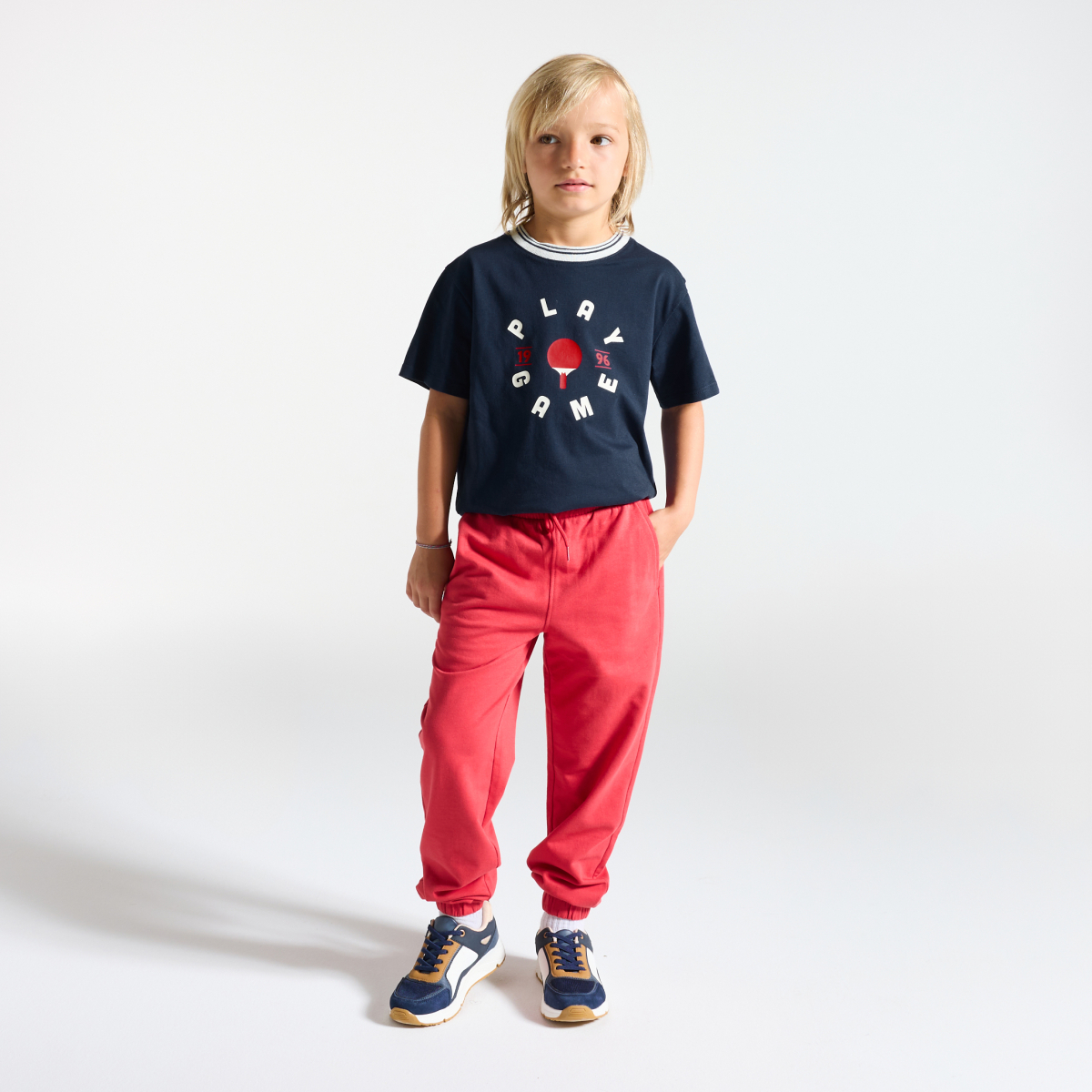 وصفي تصميم رياضي ويساير الموضة! يحمل هذا التيشيرت رسالة إيجابية لممارسة الرياضة بشكل جيد. يرتديه الأولاد أيضًا في المدينة. من قماش الجيرسي الناعم. قصّة مستقيمة. ياقة مستديرة مقلمة بلون مختلف. أكمام قصيرة. الحافة السفلية مستقيمة.