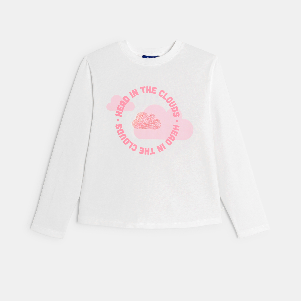 وصفي هذا التيشيرت بالأكمام الطويلة يُعد من القطع الأساسية في خزانة ملابس كل فتاة، وتُزينه رسمة لسحابة مبهجة. مصنوع من القطن الناعم على البشرة، وسهل تنسيقه مع أي بنطلون )سروال( أو تنورة، وهو قطعة لا غنى عنها في أي موسم. أكمام نوعًا ما طراز راغلان.