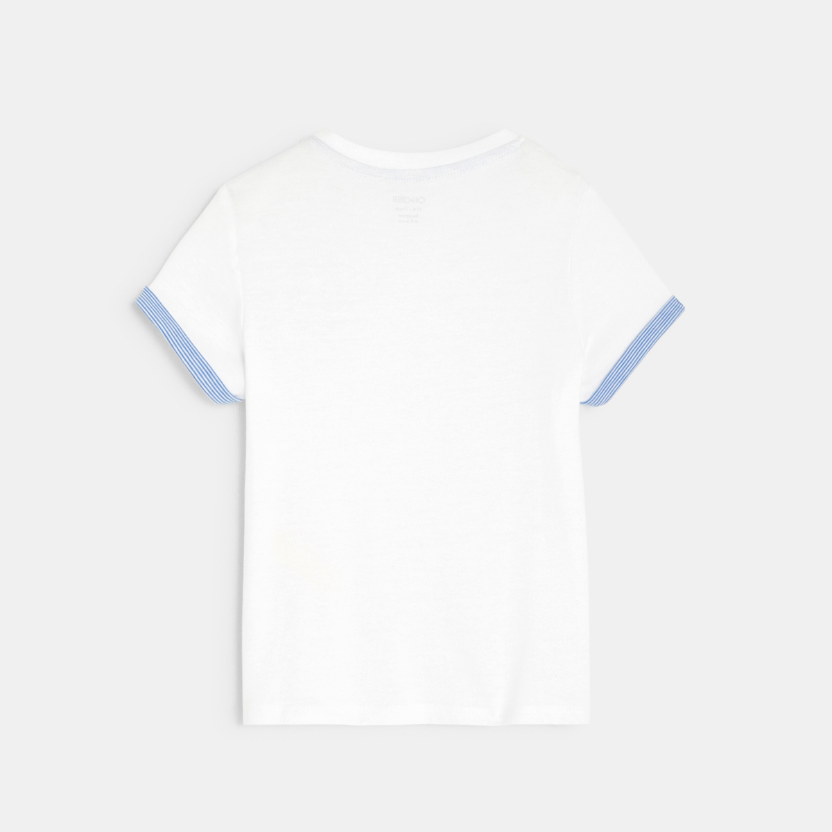 تي شيرت أكمام قصيرة صبياني بي بي. تريكو جيرسي من ألياف القطن من الزراعة العضوية. Act for Kids. نقوش مطبوعة ومطاطية على الصدر، تختلف حسب الألوان. ياقة دائرية مع حرف كوت مع أزرار على الكتف لتسهيل مرور الرأس. أكمام قصيرة مع طية مخططة ومدروزة. لصاقة صغيرة أوبي بي في الداخل.