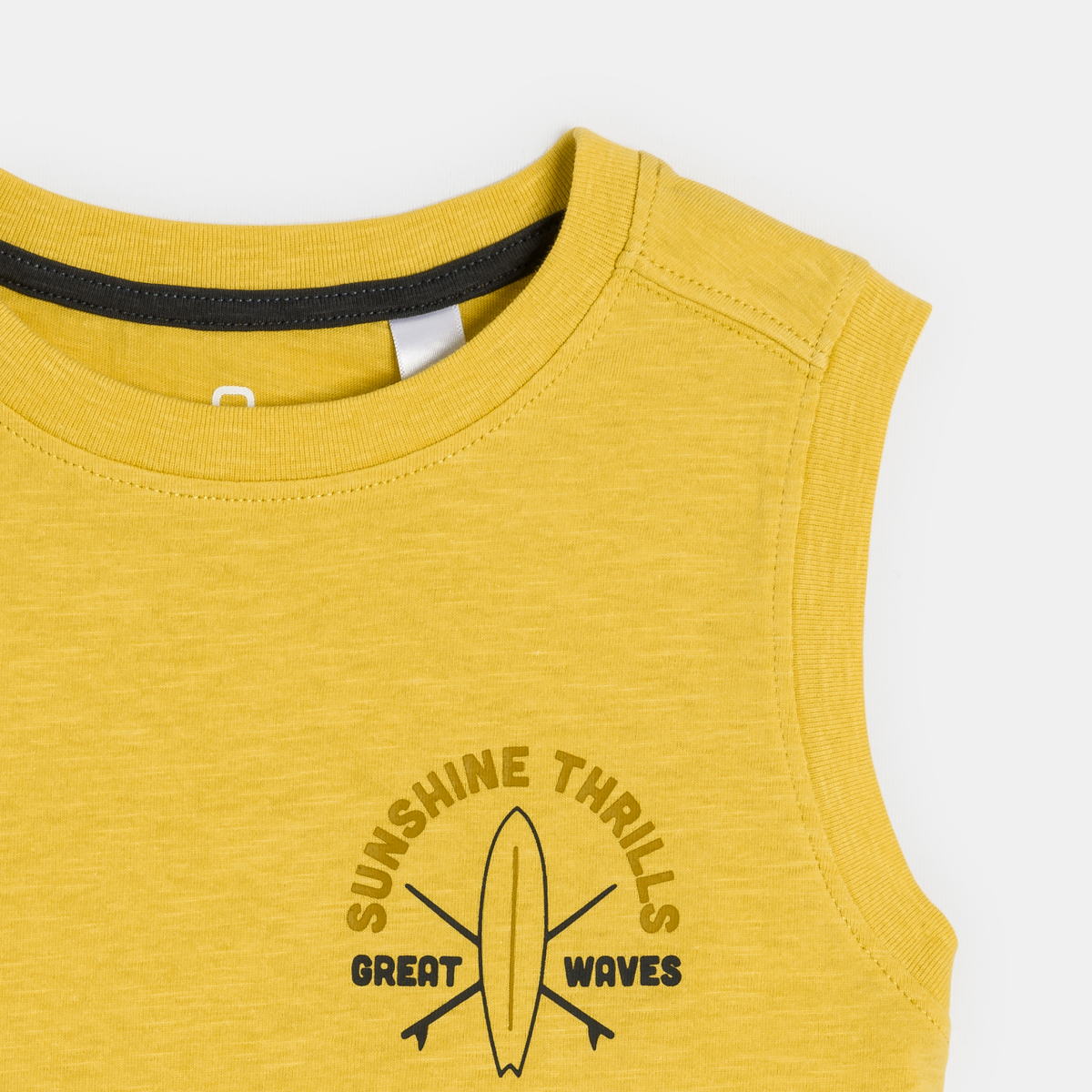 تانك توب بطبعة عبارة باللون الأصفر للأولاد