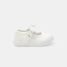 تصميم رياضي أنيق لحذاء الباليه للفتيات الصغيرات مُصمّم من قماش يتناسب مع ملابسهن، مزين بربطة عريضة على شريط لاصق، جميلة بقدر ما هي عملية.