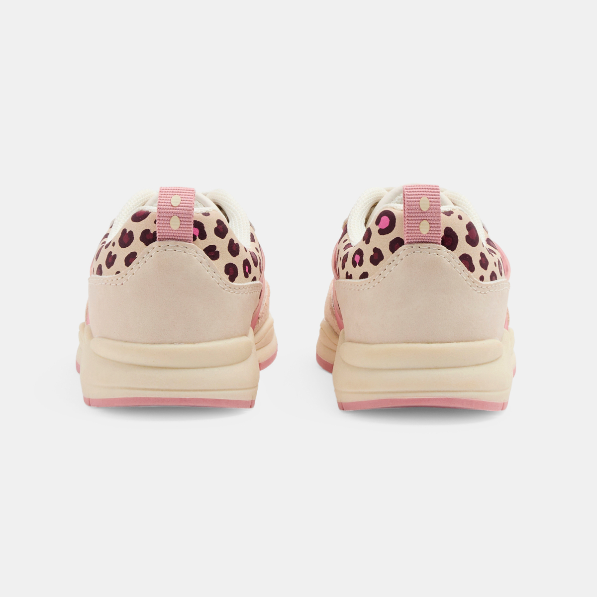 حذاء رياضي يكسوه تصميم عصري يمزُج بين اللونين الوردي والذهبي مع نقشة الفهد. لمسة جريئة وأنيقة تسرّ عيون الفتيات. تصميمها الرياضي المُخصص للجري ونعلها الذي يمنح الراحة المثالية ينال إعجاب الكثيرين مُزينة بنقوش متناسقة مع مجموعة أزياء Obaïbi.