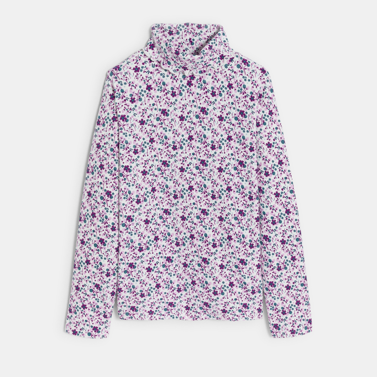 تيشيرت برقبة عالية بطبعة الزهور باللون الأرجواني للفتيات