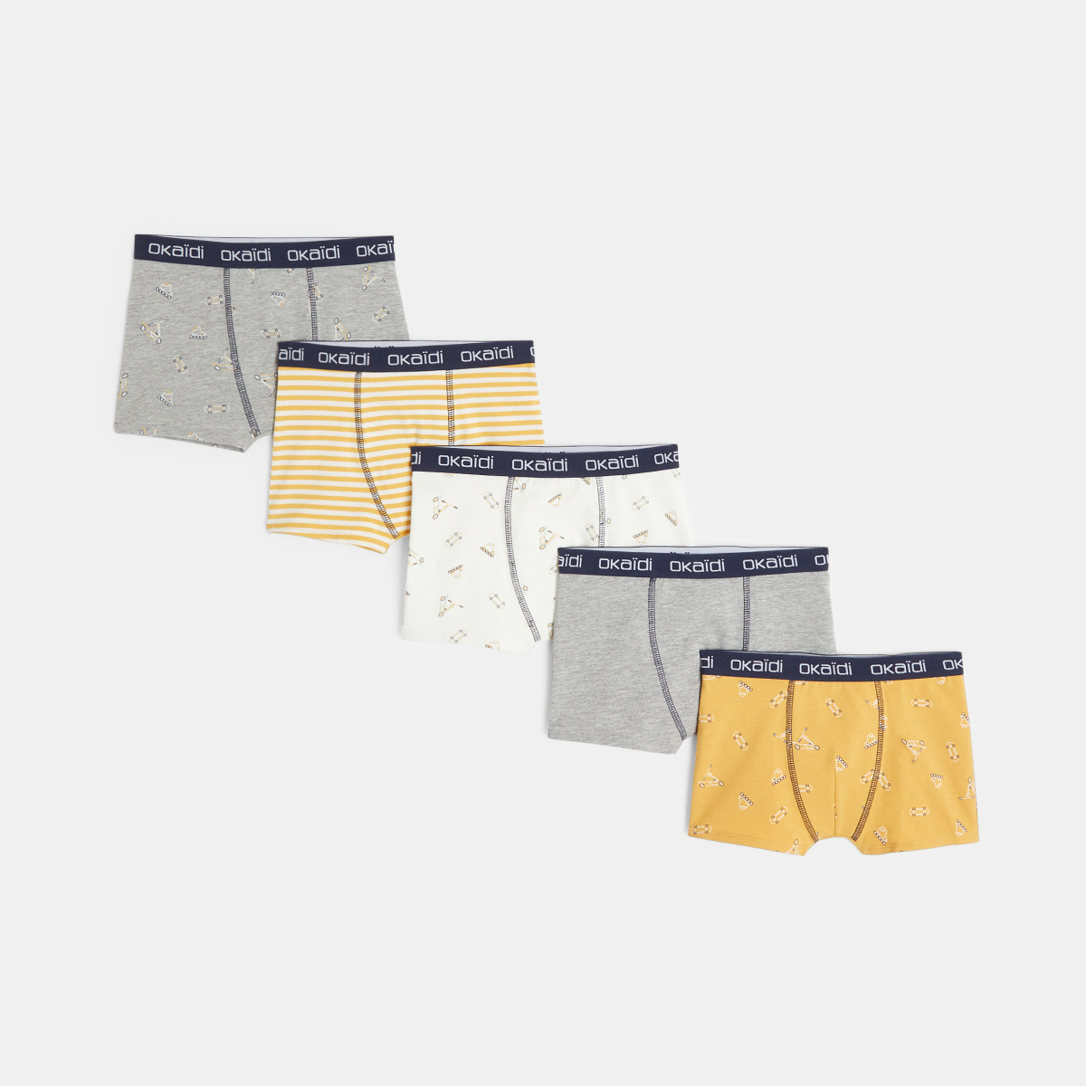 راحة جيدة. دعم مثالي. مرونة الحركات. هؤلاء الملاكمين الخمسة الفاخرين لديهم كل ما يرضي الأولاد. خصر مطاطي من أوكايدي. لمسة نهائية بخياطة علوية. عبوة من 5 ملابس داخلية للأولاد.