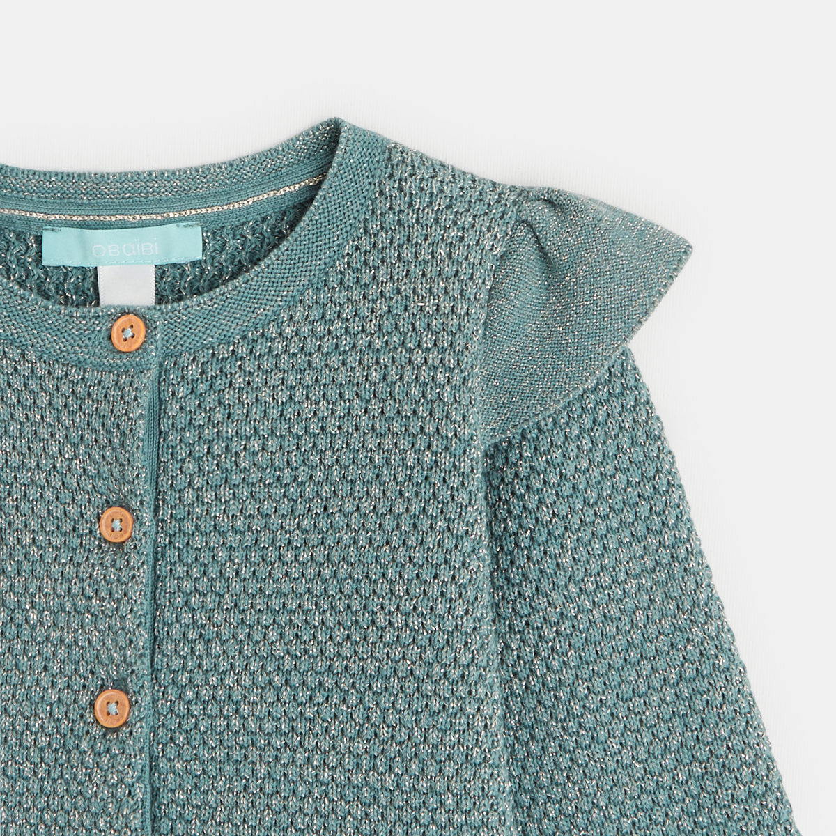 سترة تريكو فاخرة مع كشكشة، باللون الأخضر اللامع للفتيات الصغيرات