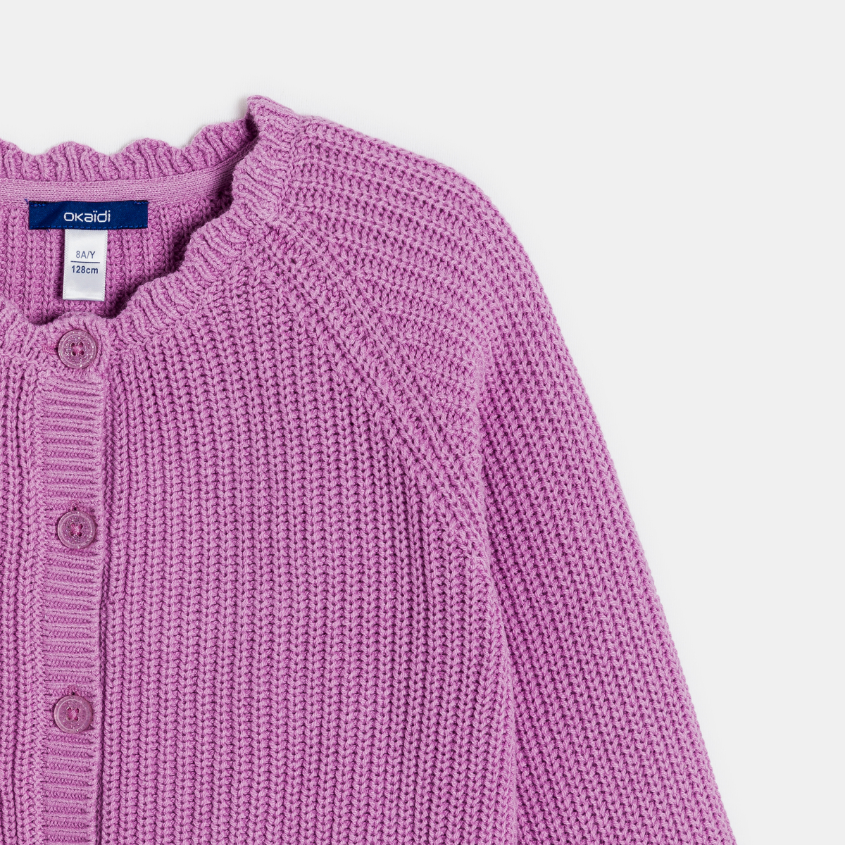 سترة مضلعة سادة، أرجوانية اللون للفتيات