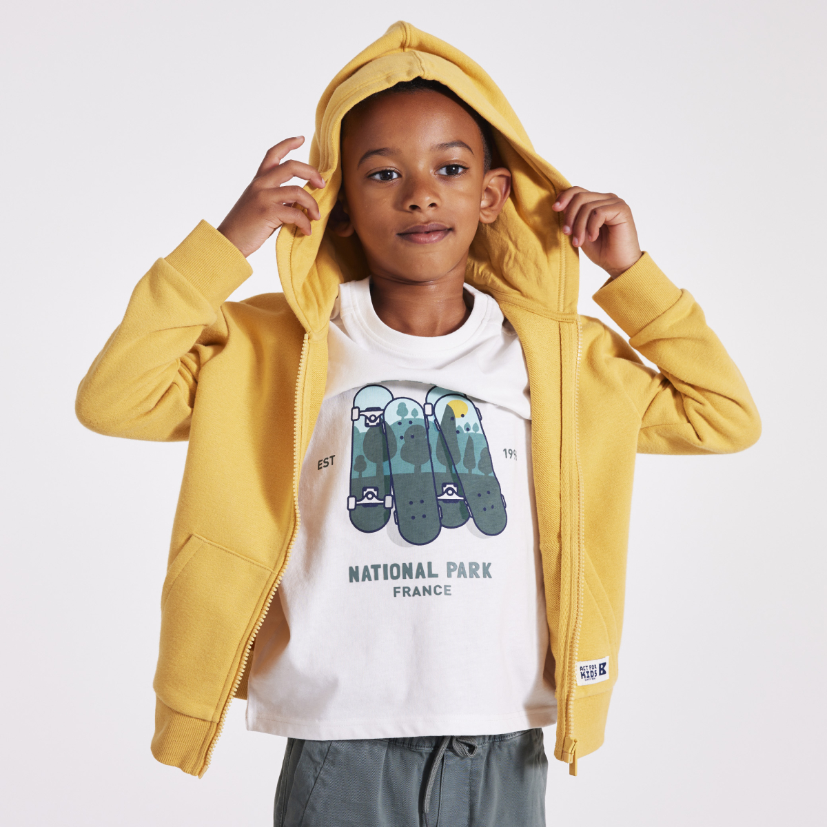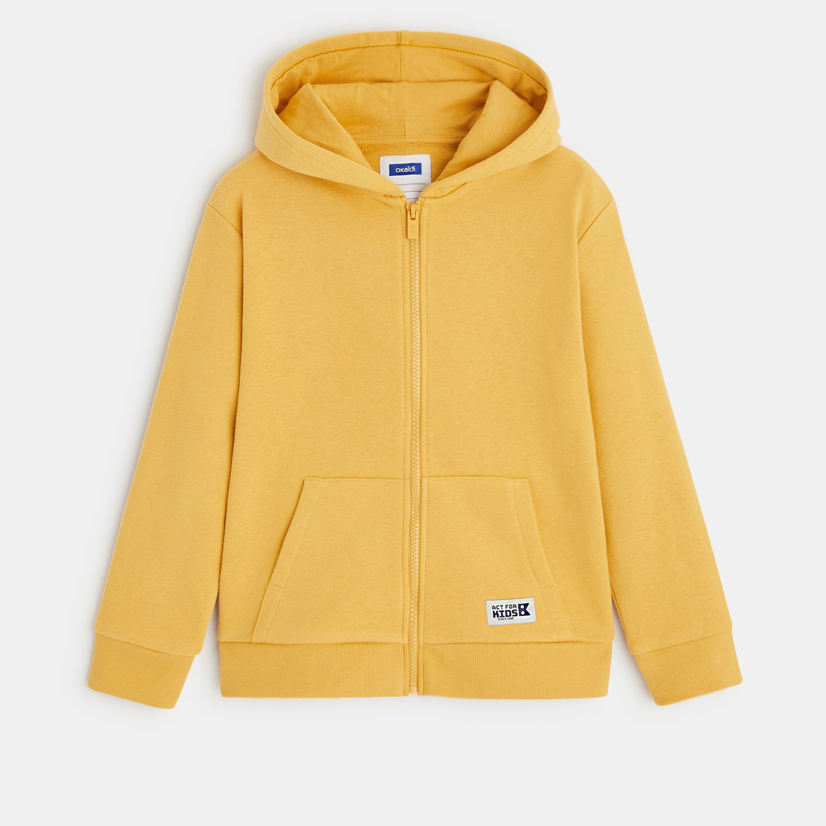 سويت شيرت بسحاب مع غطاء رأس باللون الأصفر للأولاد.