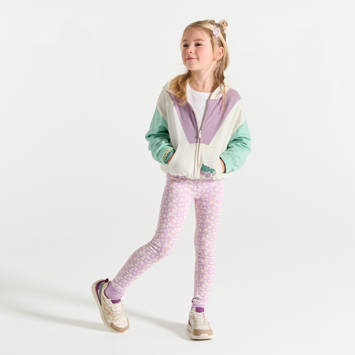 سويت شيرت بقلنسوة، كتلة اللون البنفسجي، للفتيات