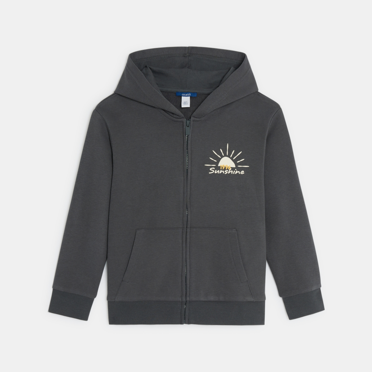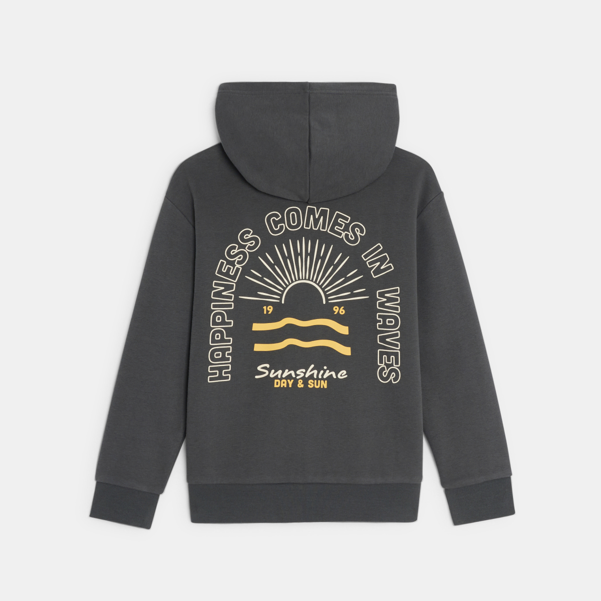سويت شيرت رمادي غامق للأولاد بغطاء للرأس بنقشة من الأمام والظهر