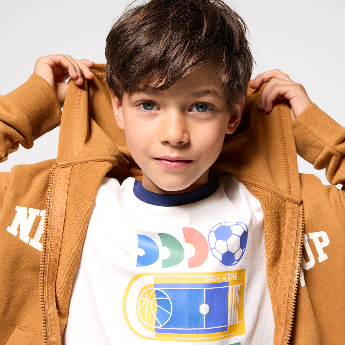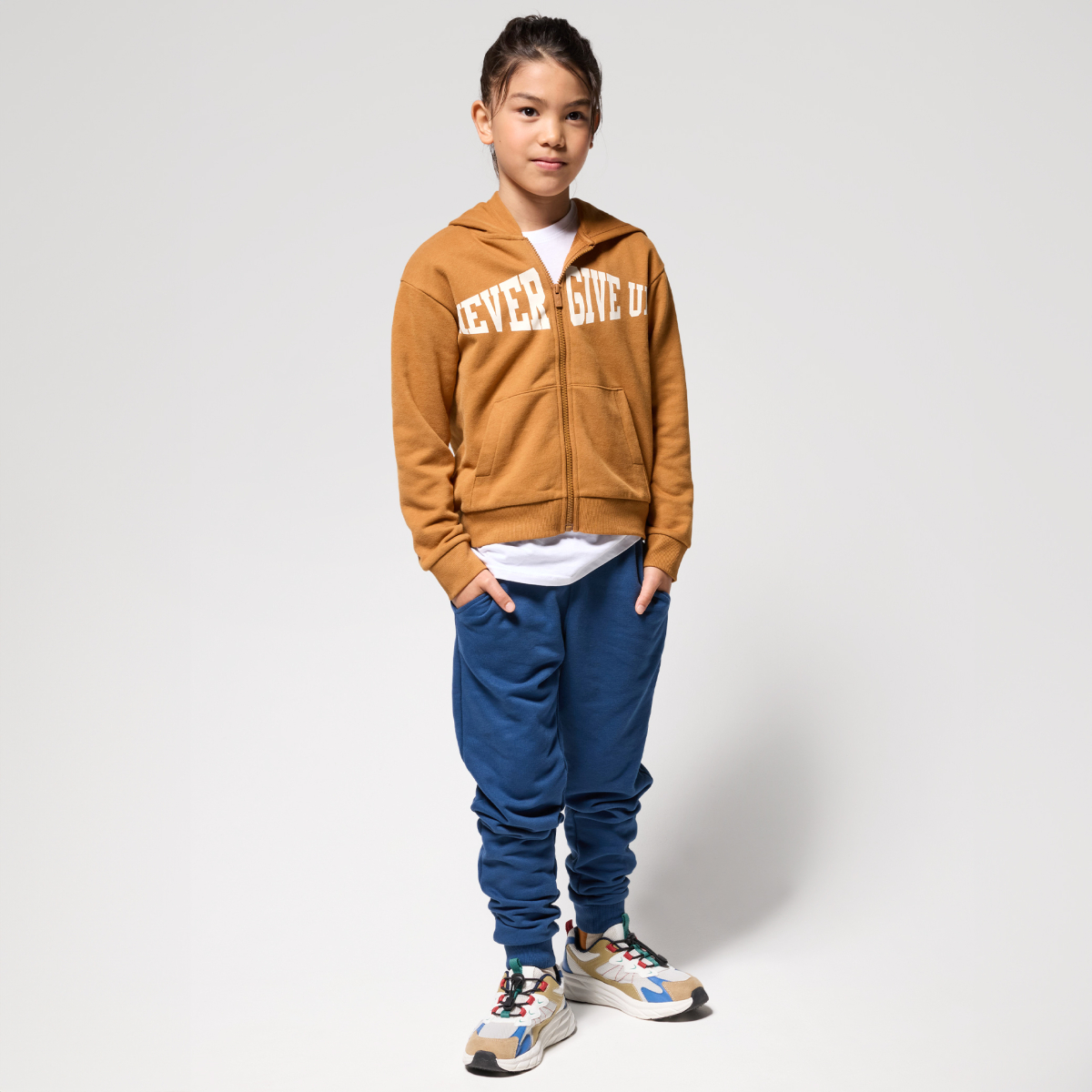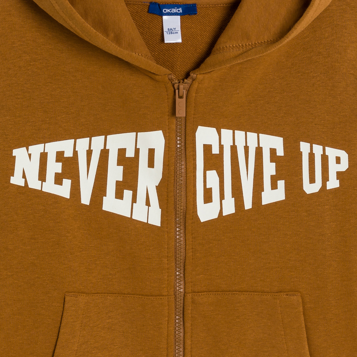 سويت شيرت بغطاء للرأس عليه رسالة، بني اللون، للأولاد