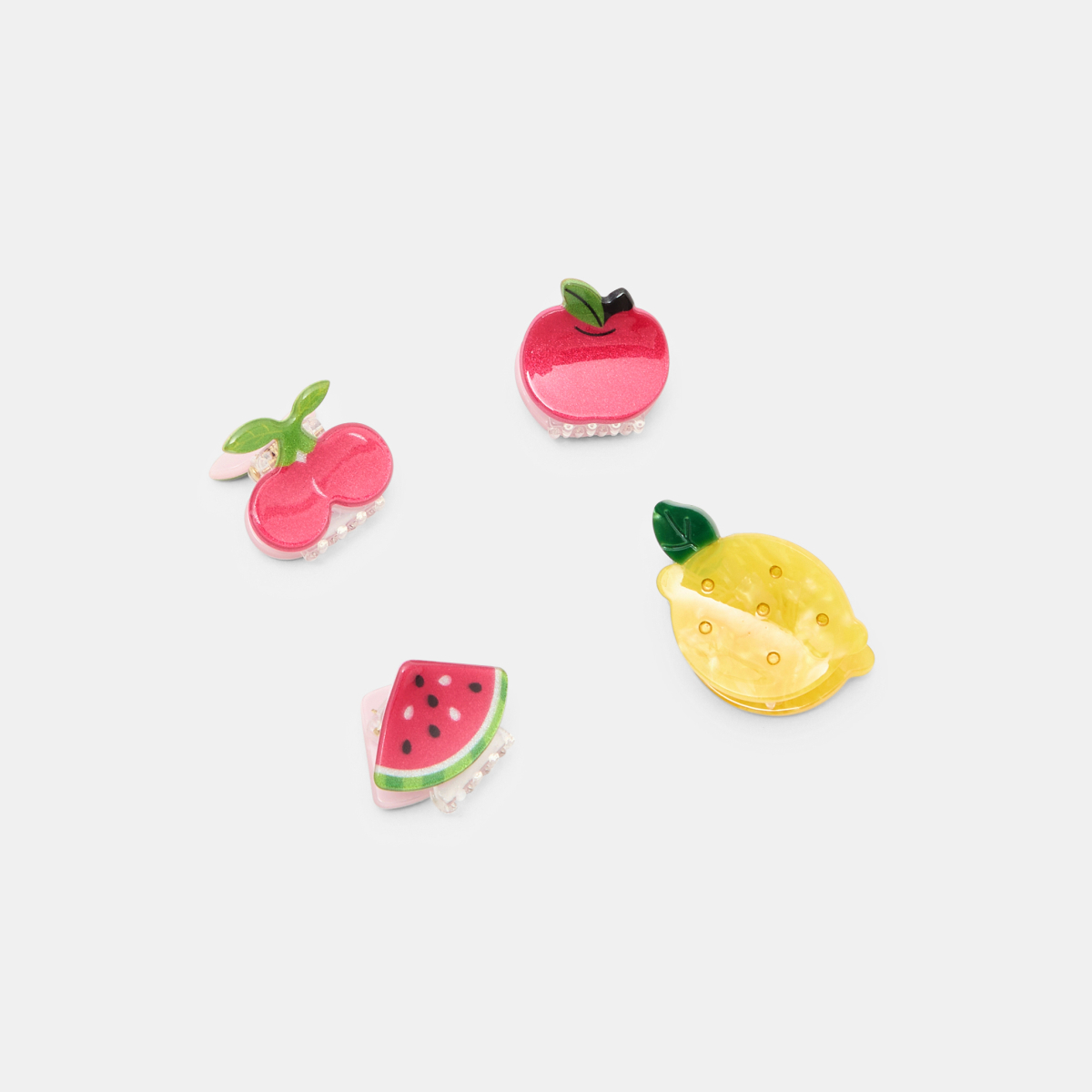 Quatre fruits d'été colorent les coiffures avec ces petites pinces fantaisie : c'est joli ! Accessoires pour cheveux. Lot de 4. Taille unique. Ne convient pas aux enfants de moins de 3 ans. Idée-cadeau.