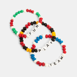 Les bijoux ont des choses à dire ! Exemple choisi avec ces deux bracelets composés de perles plates et carrées. Les filles aiment les tons vifs et les messages ainsi exprimés ! Bracelets élastiqués. Taille unique. Belle idée de cadeau.n