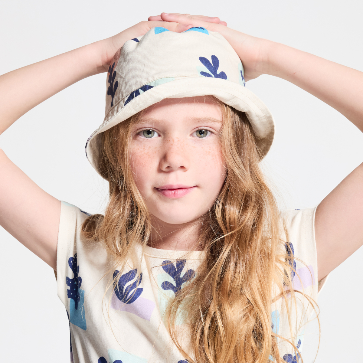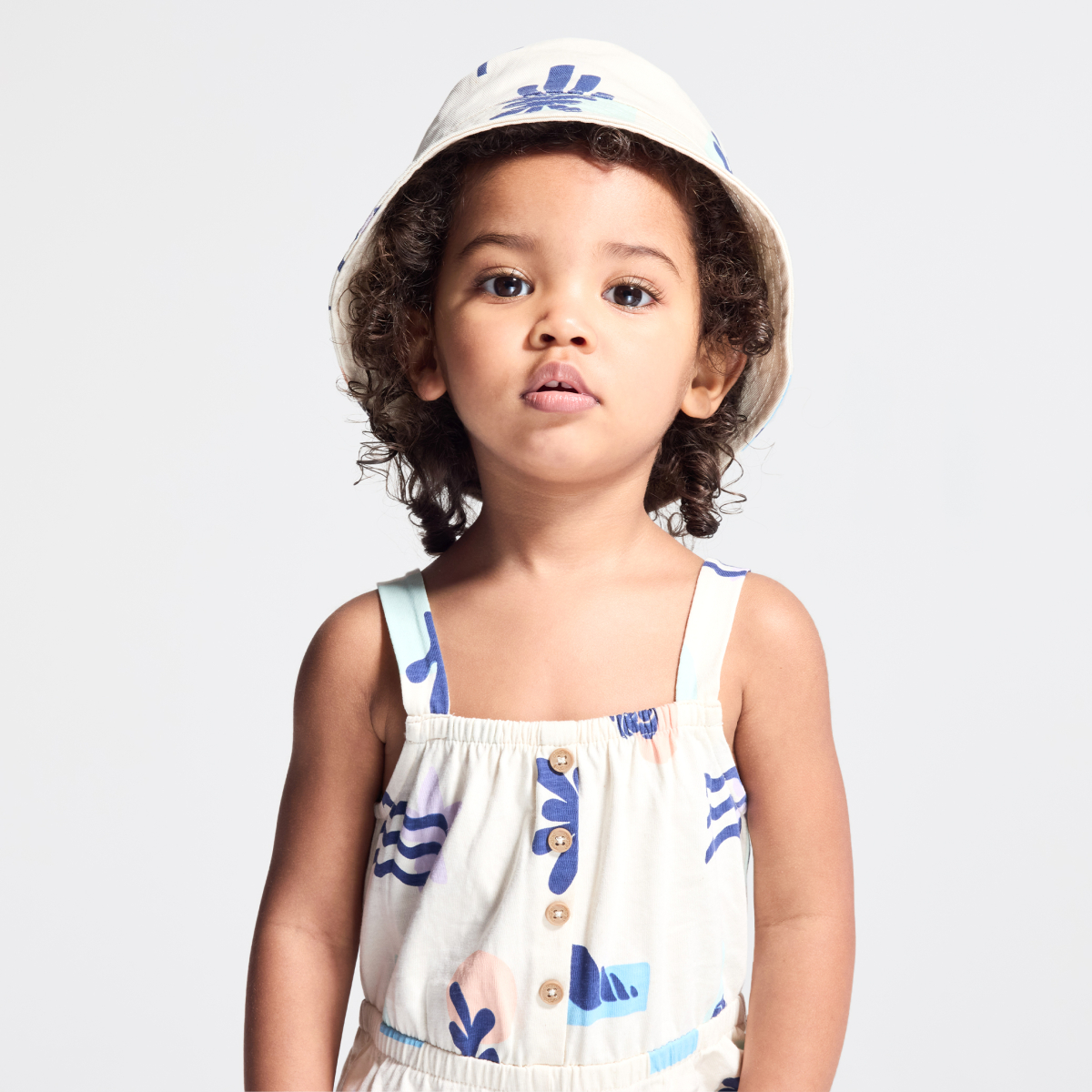 Un côté imprimé un côté uni... et deux fois plus de raisons de porter ce bob réversible sous le soleil ! Toile de coton bords surpiqués. Belle idée-cadeau.