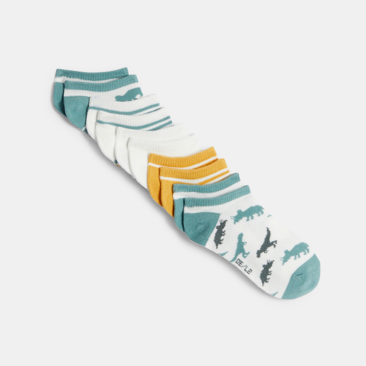 Description Les chaussettes invisibles font preuve d'originalité ! Ce lot est composé de 2 paires personnalisées de motifs dinosaures, 2 à rayures et 1 unie. Maille fine douce et extensible. Bord côtelé. Pointe et talon marqués.