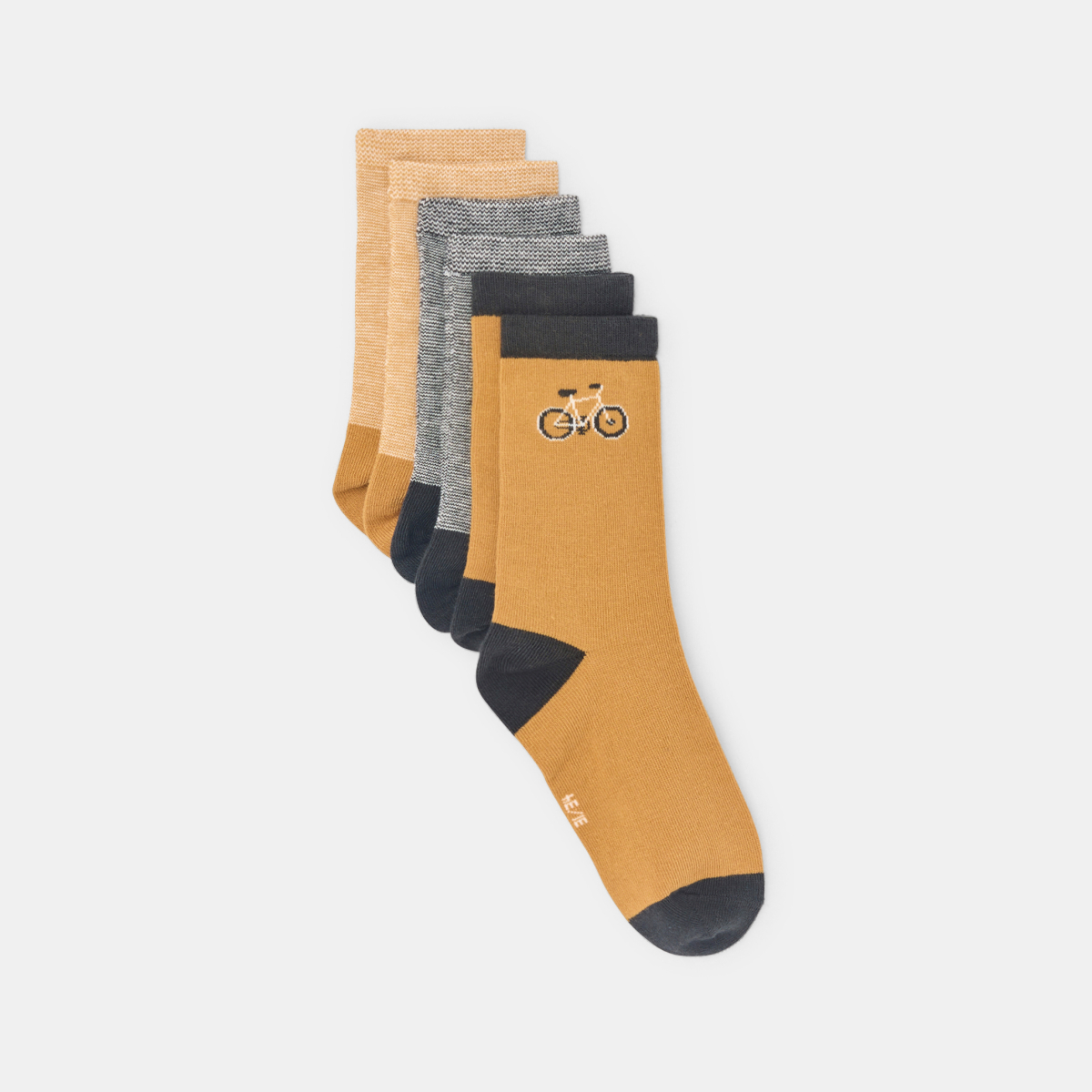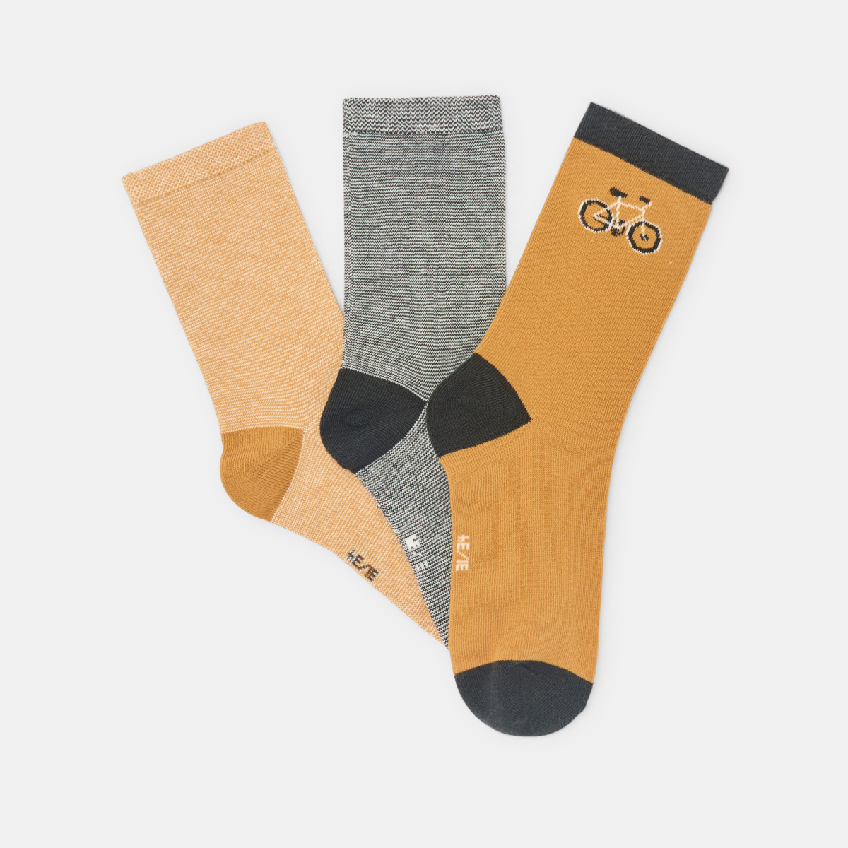 Deux paires en faux-unis et une paire avec un vélo en jacquard : l'originalité et le chic rétro font l'unanimité chez les garçons cette saison ! Maille douce et extensible, enfilage facile. Talon et pointe marqués. Idée-cadeau.