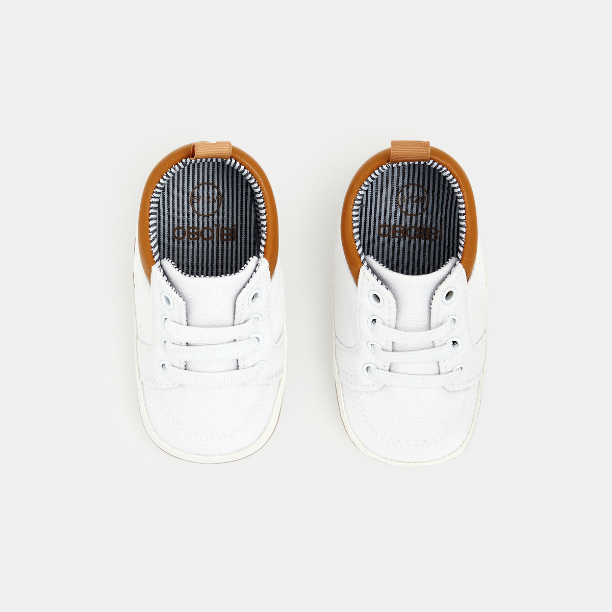 Les premières baskets en toile des petits, pour un look sportswear chic. Coloris bleu jeans avec contrefort contrasté. Deux scratch pour être bien maintenus aux pieds des garçons. Semelle souple idéale pour les tout-petits.