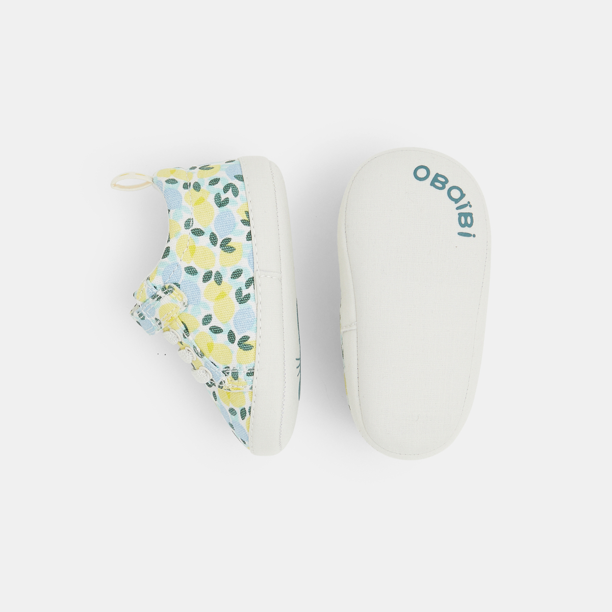 Description Un côté graphique qui mets du peps dans la tenue des petites ! Baskets souples en tissu imprimé, coordonné aux collections Obaïbi. Fermeture par scratch pour bien tenir en place.
