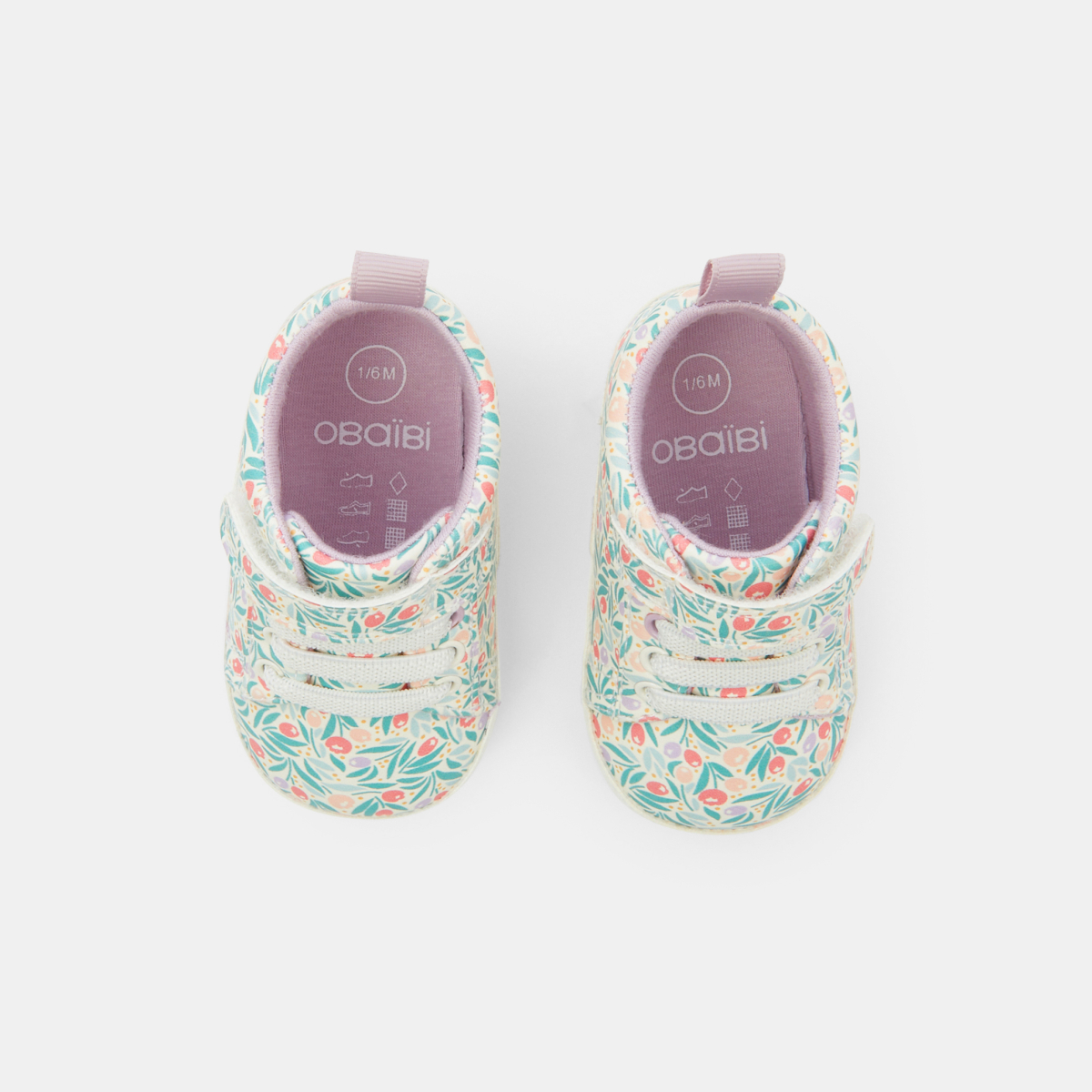 Les premières baskets en toile des filles souples et montantes pour bien rester en place. On aime le motif graphique coordonné au dressing Obaïbi. Scratch pour bien maintenir le pied. Intérieur en coton doux.
