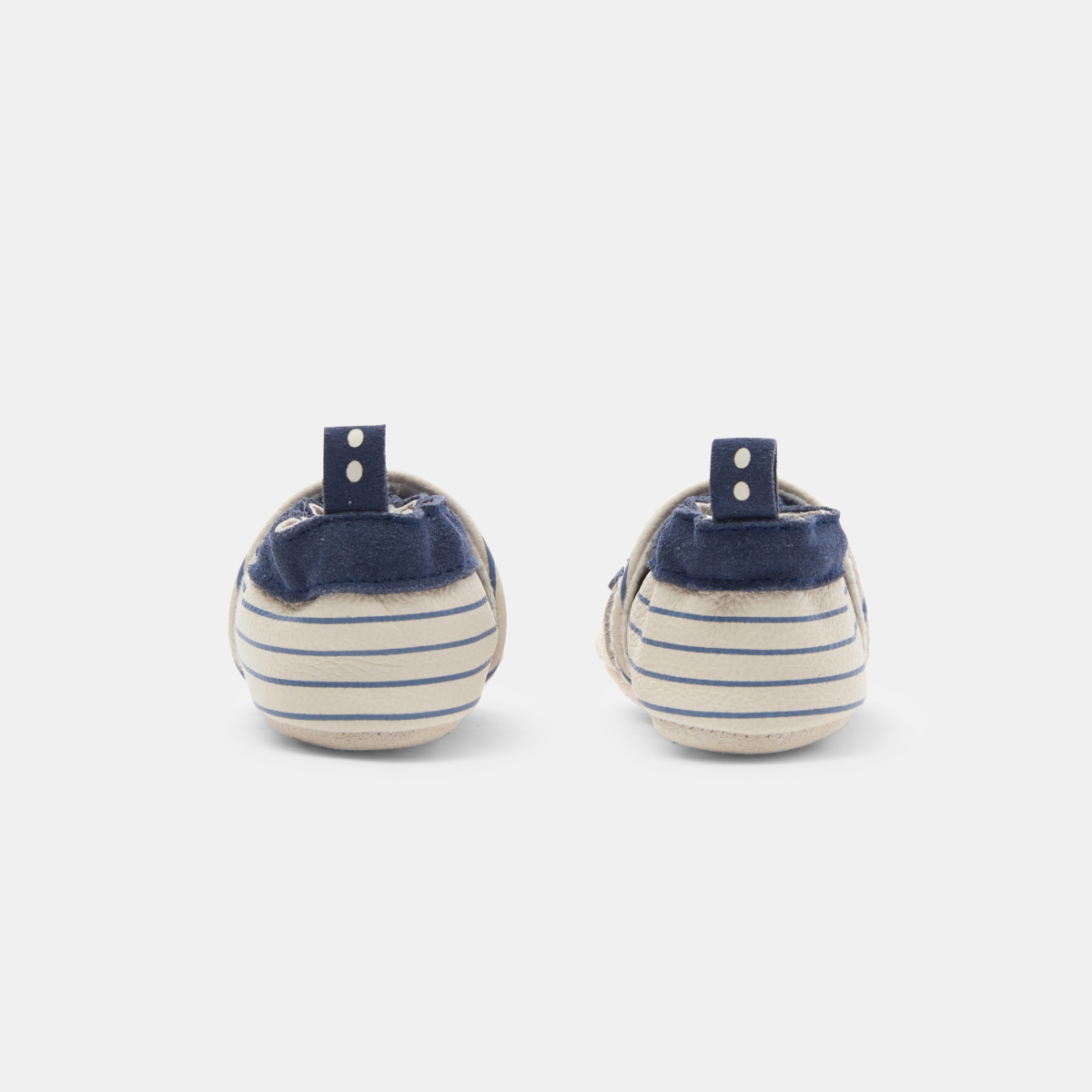 Pour protéger les pieds des tout-petits, ces chaussons en cuir sont indispensables. Faciles à enfiler grâce aux côtés élastiqués, ils sont confortables et tout cuir, pour être portés pieds nus. Semelle souple qui convient dès les premiers jours.