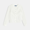 Délicatesse et rétro-romantisme dans l'air ! Cette blouse blanche est toujours super jolie dans un look. Focus sur les détails : col frou-frou, plis religieuse, galon de dentelle, broderies ton sur ton et petits boutons nacrés. Cotonnade douce. Coupe droite. Manches longues. Base droite.