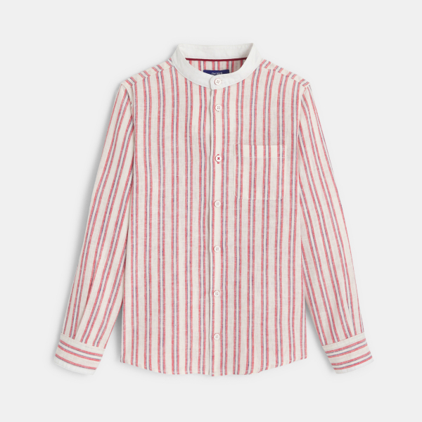 Chemise rayée en coton et lin rouge Garçon