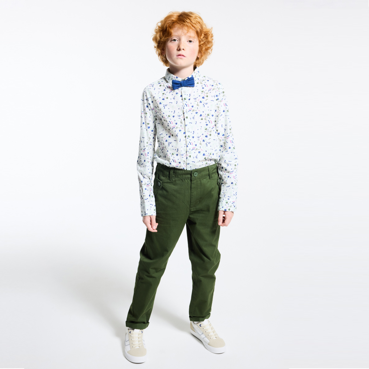 Avec ses manches longues retroussables par patte et bouton, cette chemise s'adapte à tous les évènements ! Les garçons aiment son imprimé amusants. Forme boutonnée avec petit col.