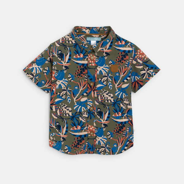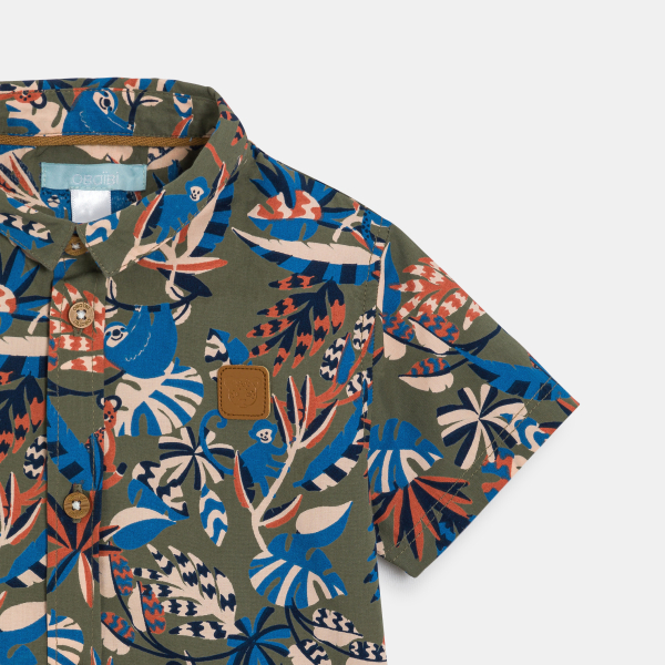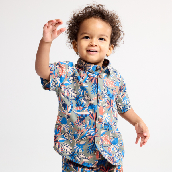 Les petits aventuriers adorent l'imprimé de leur chemise en coton doux : les singes invitent au voyage et apportent du soleil dans le vestiaire des garçons. Manches courtes et boutonnage devant.
