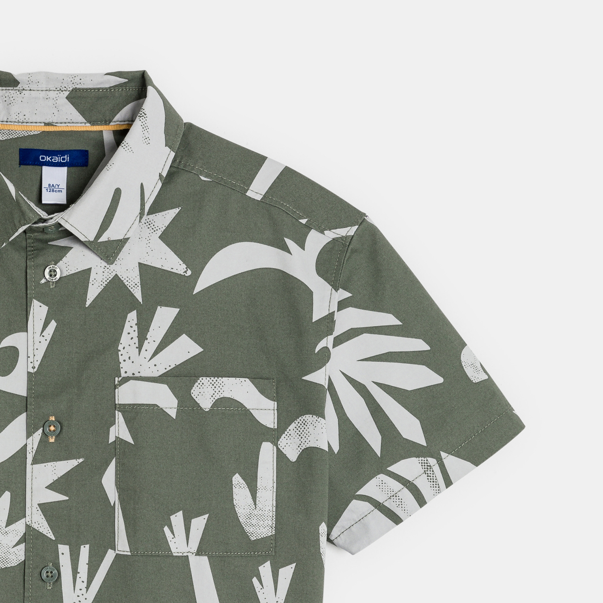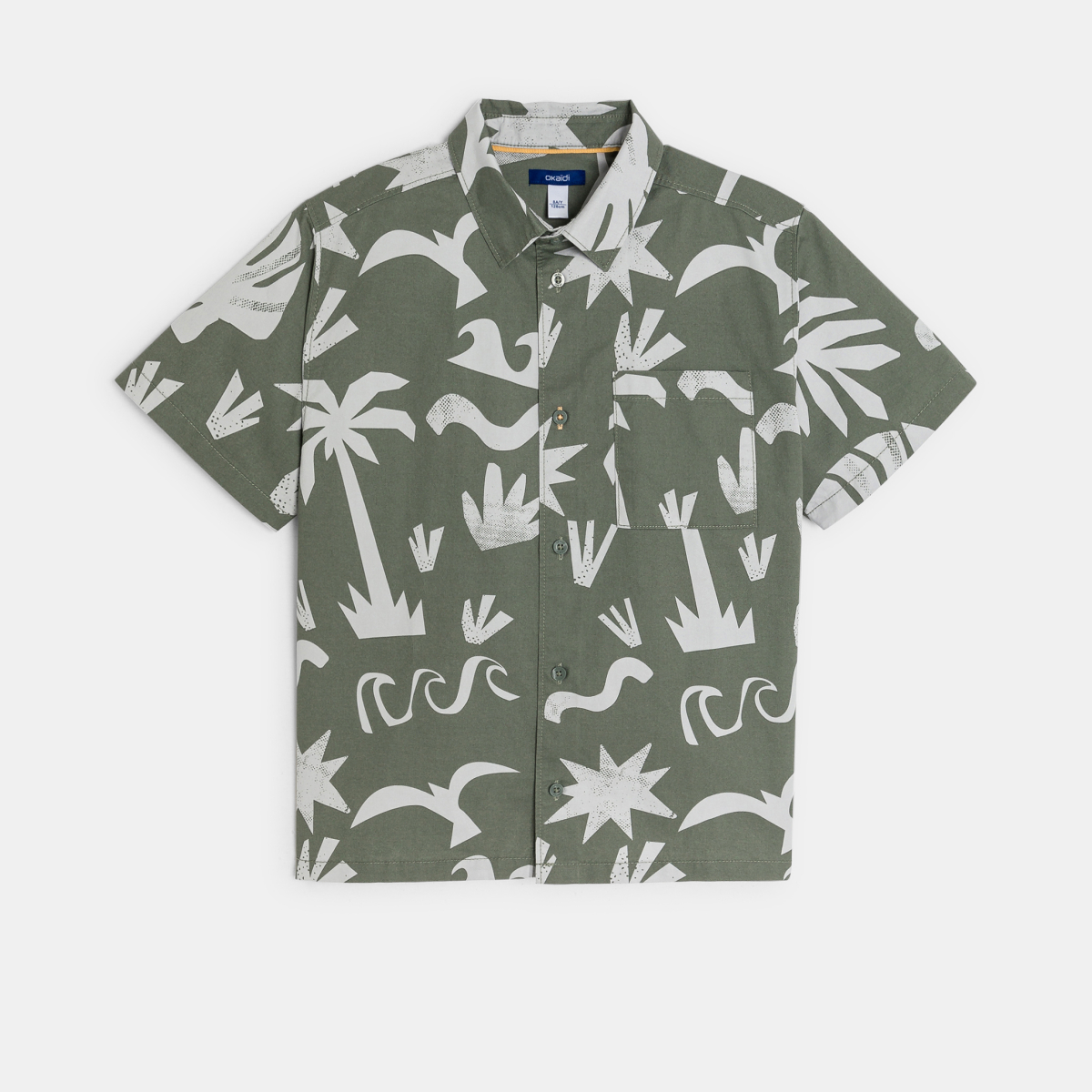 La chemisette passe à l'heure du printemps-été avec des motifs imprimés qui sentent bon les vacances ! Tissu doux et léger agréable à porter. Coupe droite. Col chemise. 1 poche poitrine. Manches courtes. Base droite. Finition piquée.
