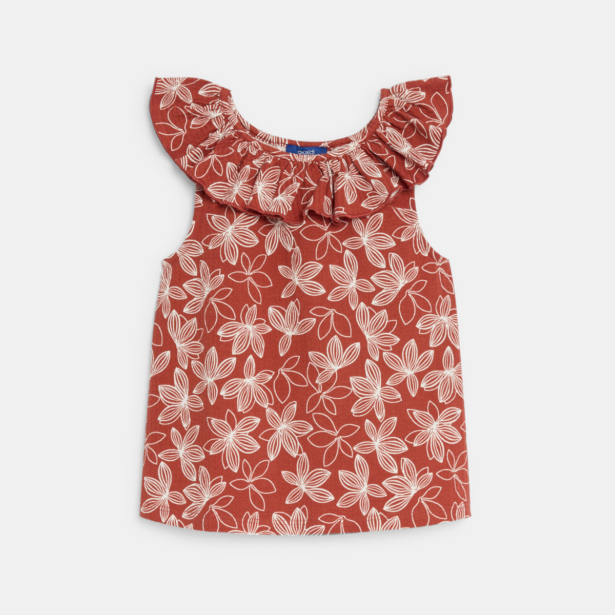 Description L'originalité est toujours bienvenue dans les looks chics ou cool ! Top sans manches en jersey fantaisie et tramé. Motifs imprimés all over. Encolure arrondie élastiquée, volants en animation devant et dos. Coupe légèrement évasée. Base arrondie. Finition surpiquée.