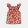 L'originalité est toujours bienvenue dans les looks chics ou cool ! Top sans manches en jersey fantaisie et tramé. Motifs imprimés all over. Encolure arrondie élastiquée volants en animation devant et dos. Coupe légèrement évasée. Base arrondie. Finition surpiquée.
