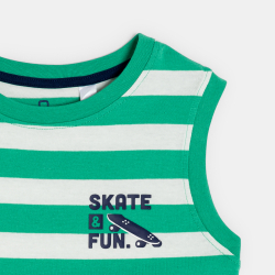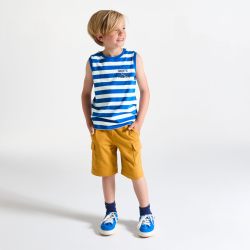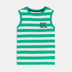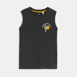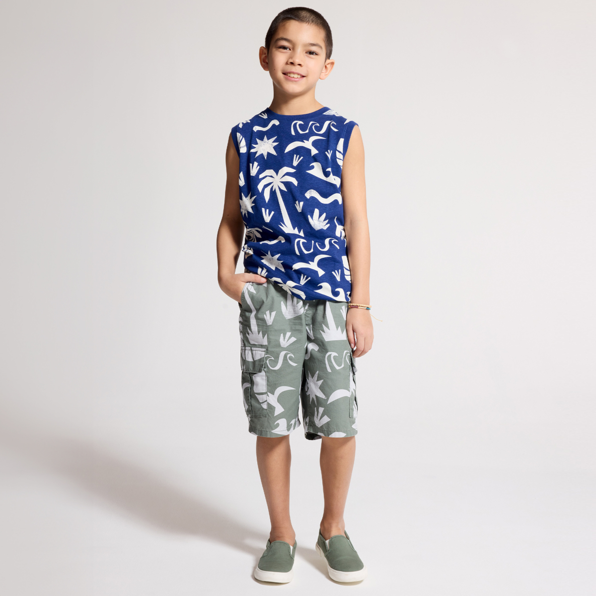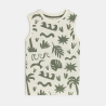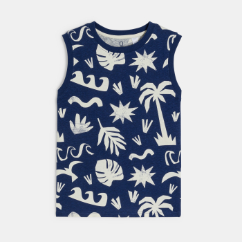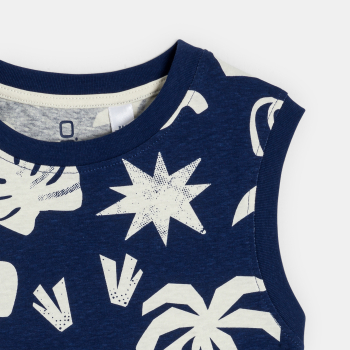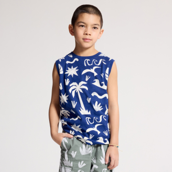 Description Look tropical et esprit cool pour ce t-shirt sans manches imprimé all over ! Jersey flammé, doux et agréable à porter. Coupe droite. Col rond, enfilage facile. Emmanchures américaines. Biais côtelés en finition. Base droite. Coutures ton sur ton.