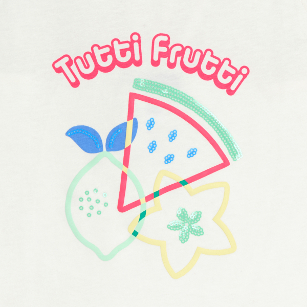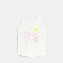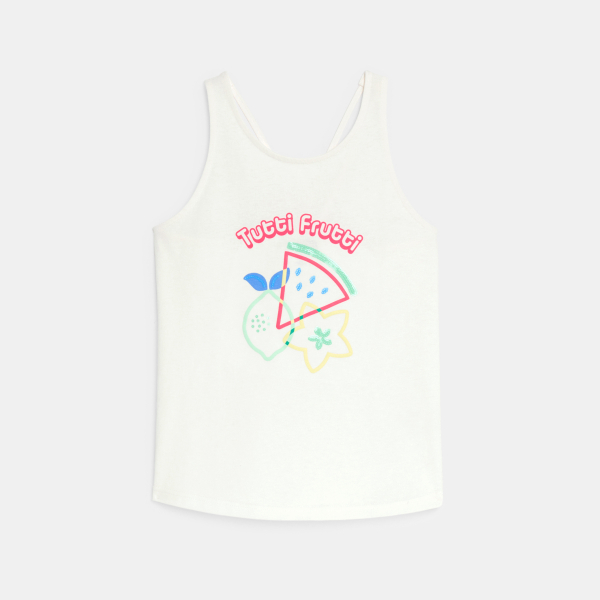 Tutti frutti ! Ce débardeur vitamine les looks de la belle saison ! Les filles adorent les sequins brodés : c’est le bon détail ! Jersey doux. Coupe légèrement évasée. Encolure arrondie dégagée devant et dos. Bretelles en V dans le dos. Base arrondie. Coutures ton sur ton.