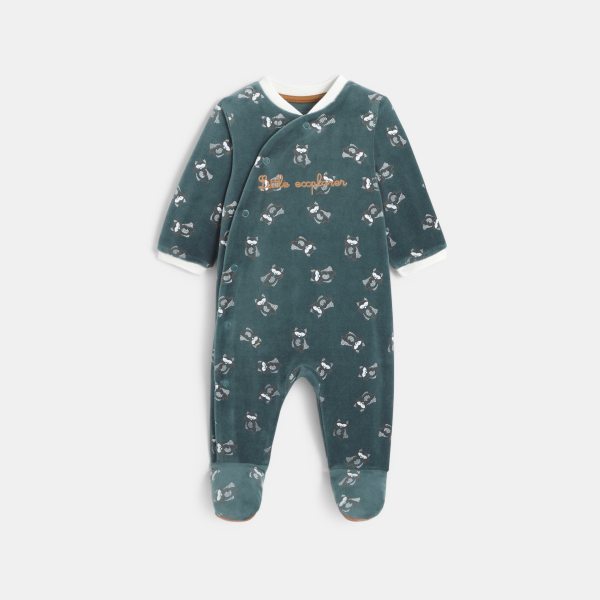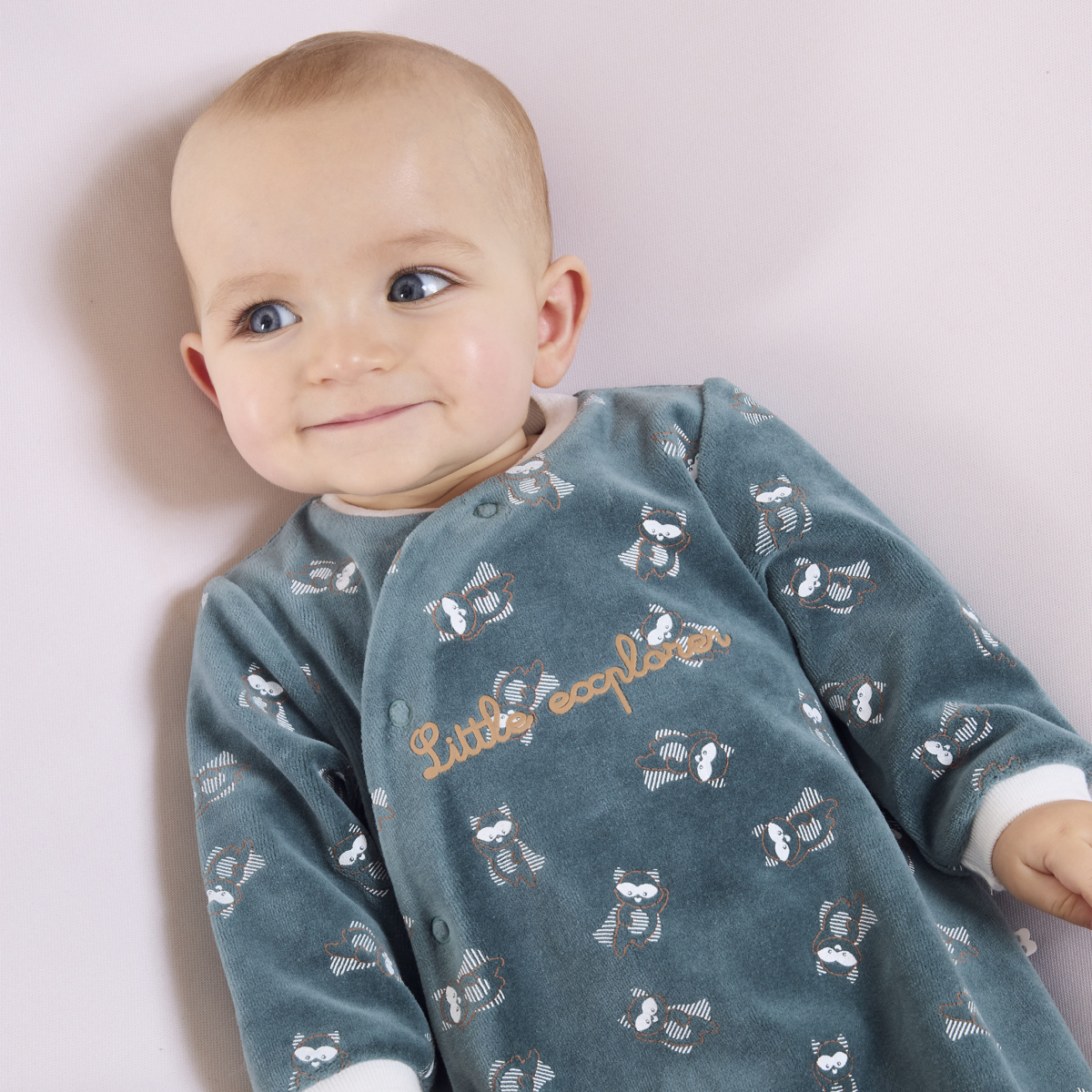 Description Les petits explorateurs apprécient leurs nuits dans le confort de ce pyjama forme une pièce en velours doux ! Pressionné devant pour un habillage sur le dos, avec impressions et broderie devant.