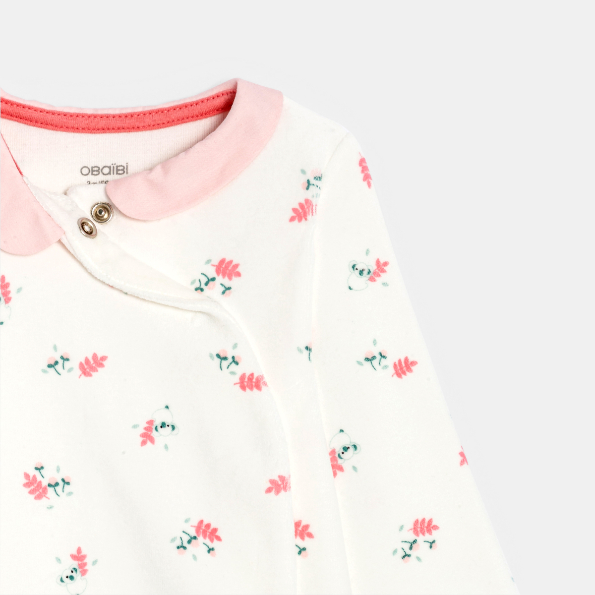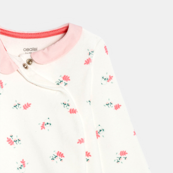 Description Pressionné sur le devant pour un minimum de manipulation, ce pyjama forme une pièce réchauffe les petites de son velours doux. Imprimé fleuri et petit col contrasté.