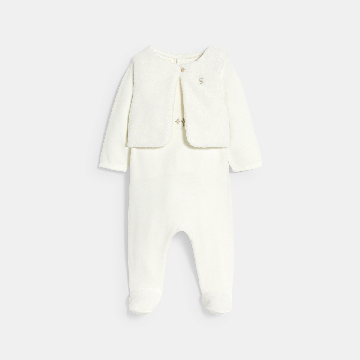 Dors-bien velours avec gilet sans manches soft boa blanc bébé fille