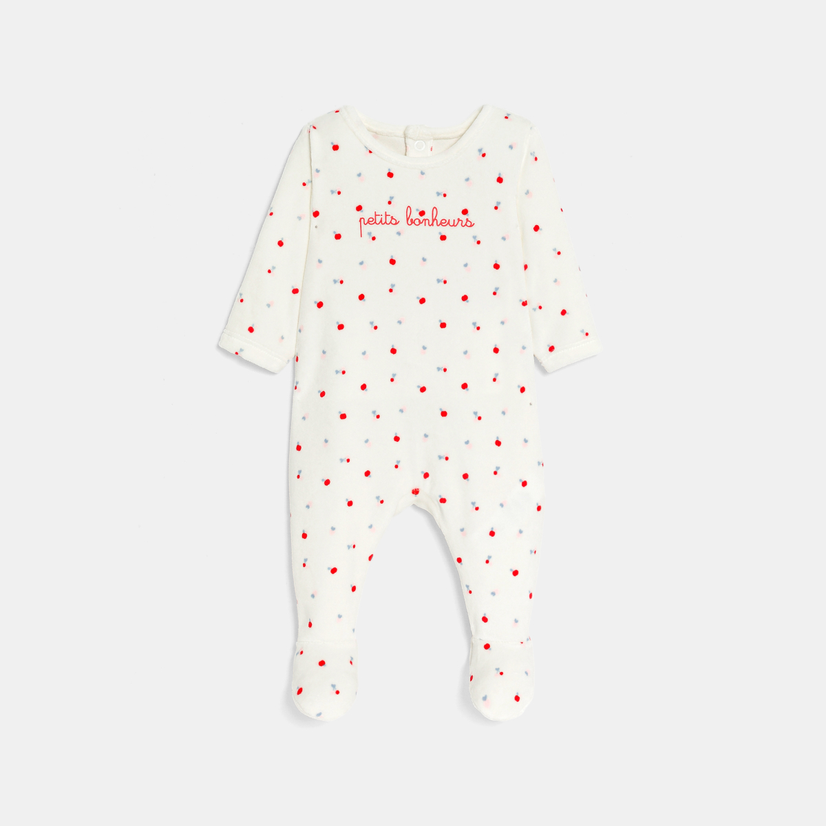 Dors-bien velours pommes blanc bébé fille