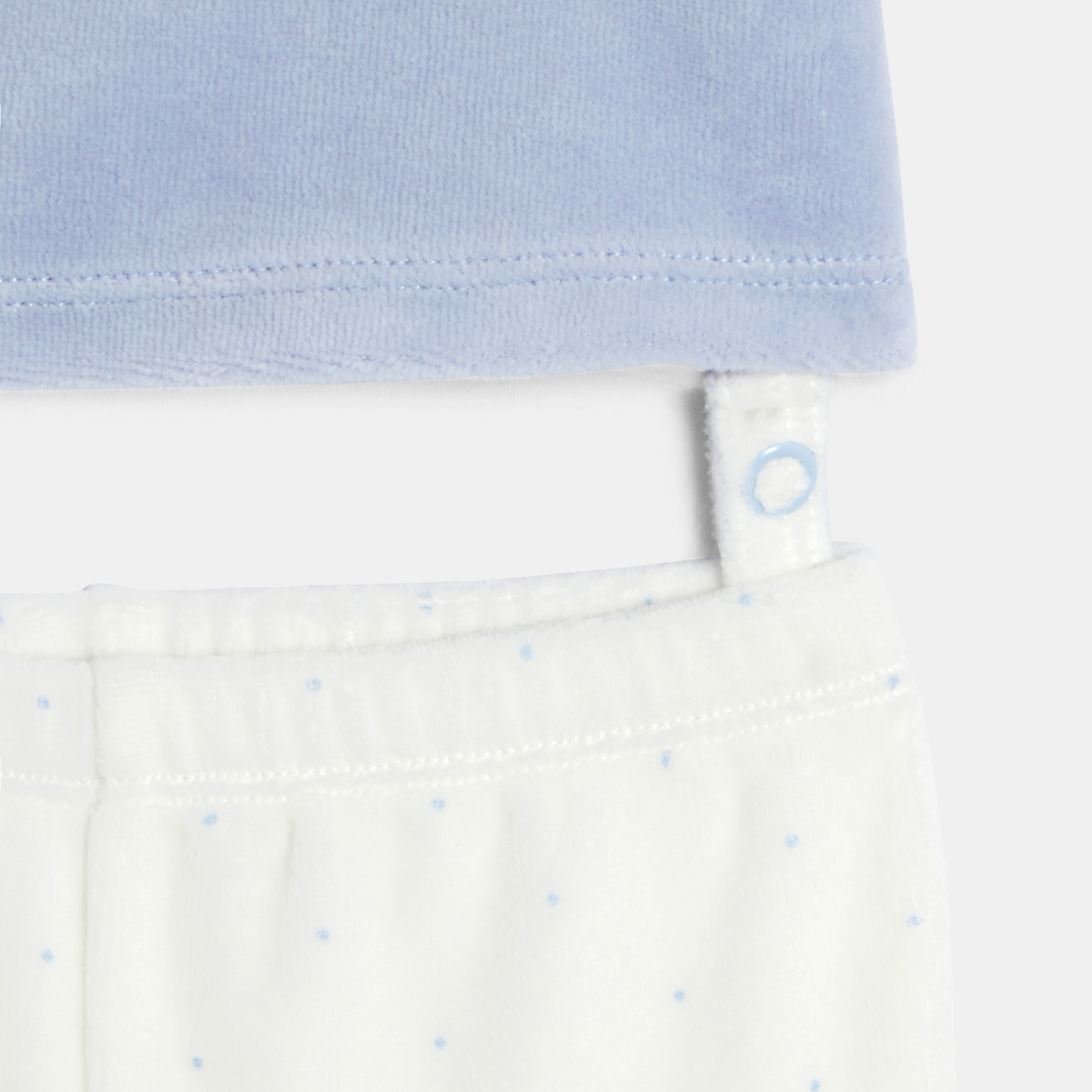 Description Avec son illustration colorée qui plaît aux filles, ce pyjama en velours doux apporte une touche romantique, pour des nuits sereines. Haut manches longues entièrement pressionné dos et pantalon à pieds jusqu'au 12 mois, puis encolure pressionnée dos et bas élastiqué à partir du 18 mois.