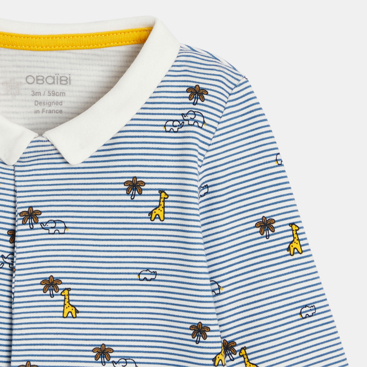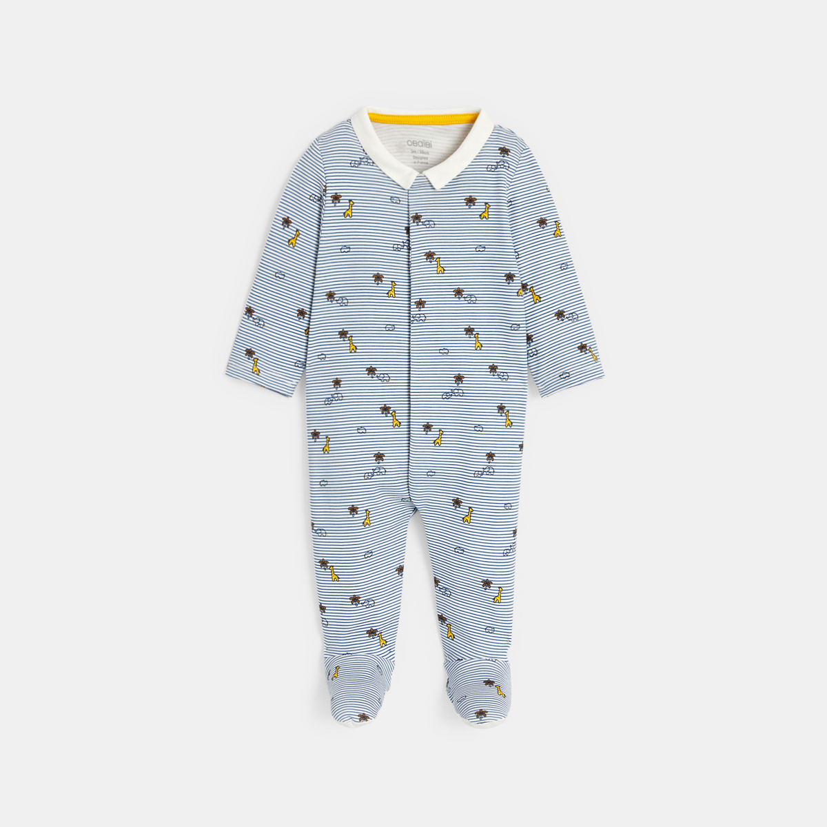 Les amis de la savane s'amusent sur ce dors-bien qui amuse les petits ! En interlock rayé qui réchauffe les nuits des garçons, ce pyjama forme une pièce assure des nuits douces et tout confort. Fermeture par pressions devant pour un habillage facile sur le dos.