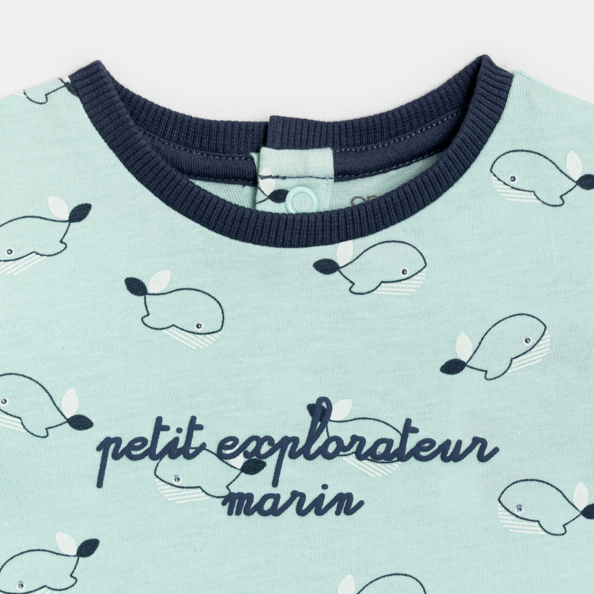 Les petits fans de nature adorent l'imprimé de leur combinaison : les baleines s'amusent sur cette forme à manches et jambes courtes, idéale pour l'été ! Pressions au dos et à l'entrejambe pour habiller facilement les garçons.