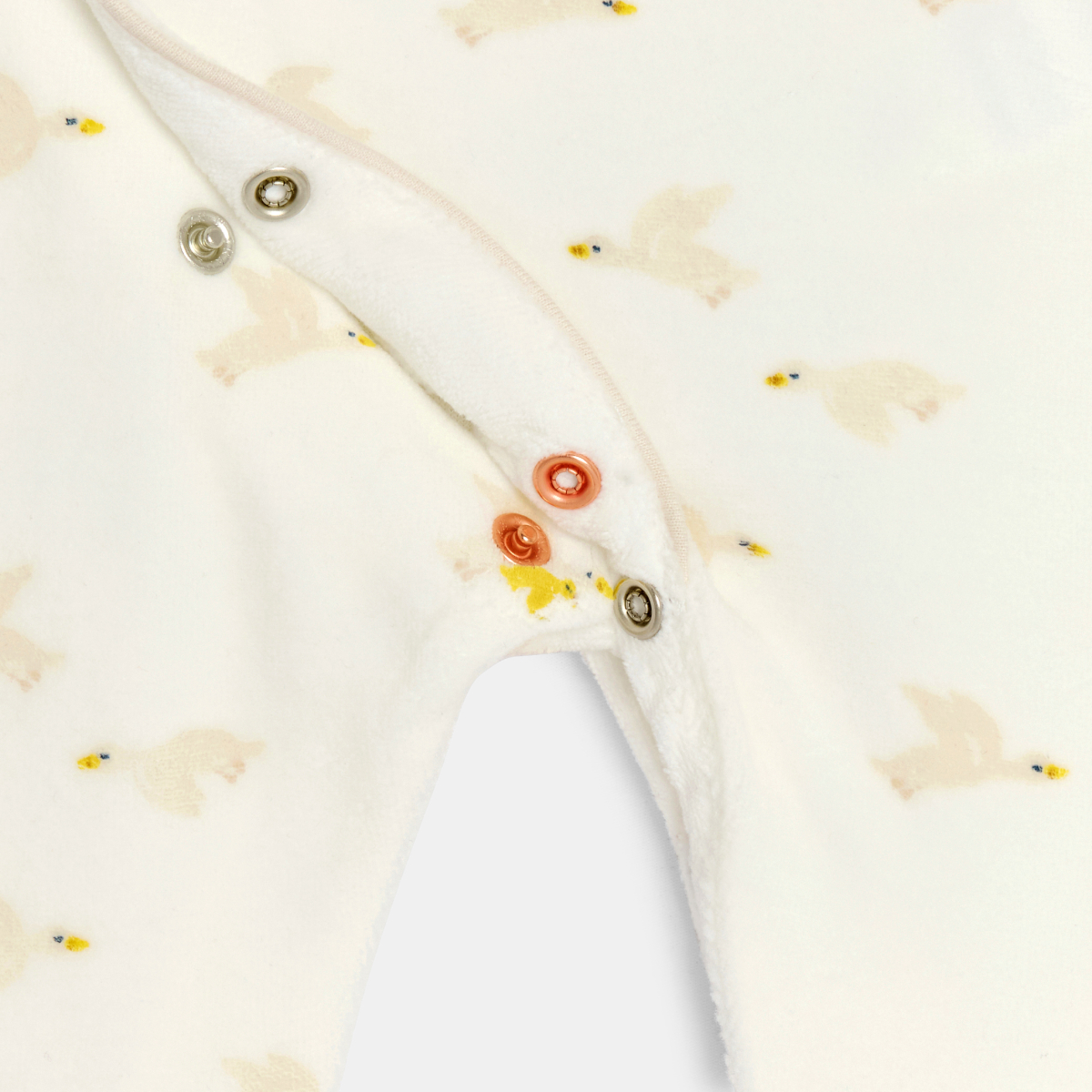 Avec son velours ultra doux sur la peau des petits ce dors-bien est un véritable cocon de confort. On aime la forme pyjama une pièce avec ouverture croisée par pressions sur le devant pour moins de manipulation. Illustré d'oies il est coordonné à la collection Obaïbi.