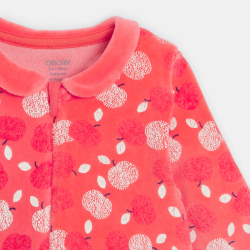 Pour les nuits douces des petites, ce dors-bien en velours confortable est indispensable, dès les premiers jours. Une forme à pressions croisées sur le devant pour habiller facilement les filles sur le dos. Petit col, poignets volantés et motif coordonné à la collection Obaïbi des filles.