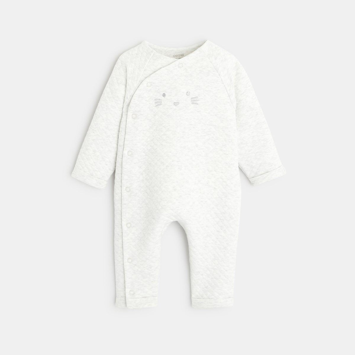 Une frimousse de chat pour un ensemble de naissance tout en douceur. Dors-bien molletonné douillet comme un cocon. Forme pressionnée croisée pour habiller le tout petit facilement sur le dos. Body coordonné en jersey doux, avec manches longues. Pressions devant pour un habillage tout aussi simple. Une belle idée de cadeau à offrir.