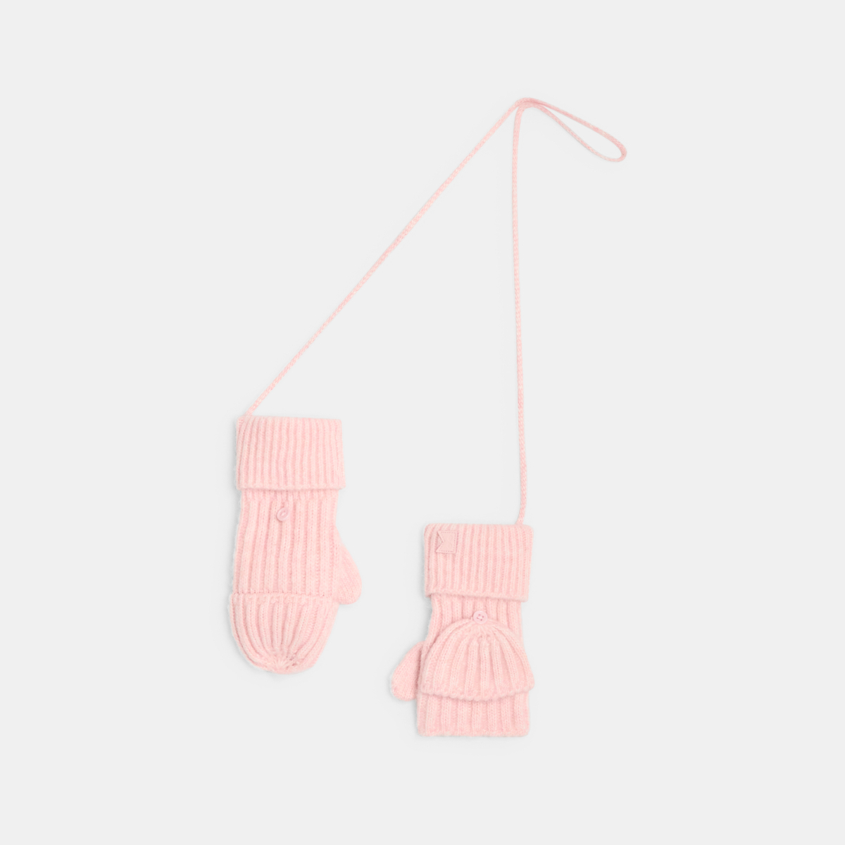 Version moufles ou mitaines rose : les filles alternent en fonction de la température extérieure. Dans les deux cas, le style est là et la chaleur aussi ! Les moufles sont en maille côtelée moelleuse et rattachées par un cordon pour l'enfiler dans les grosses pièces. Poignets côtelés. Belle idée de cadeau.