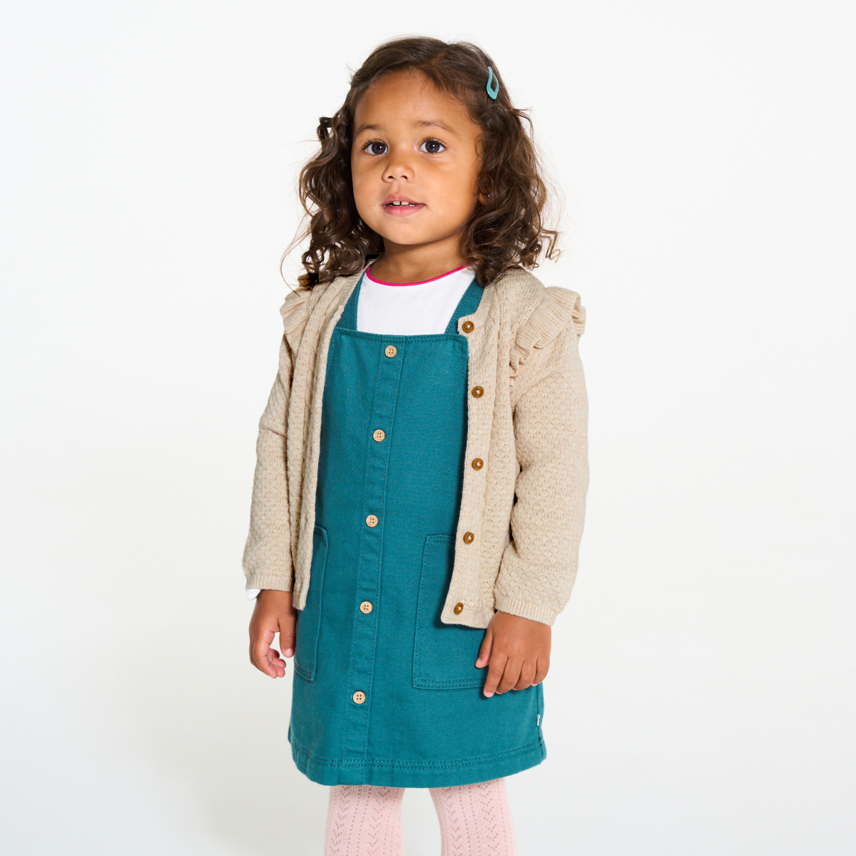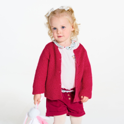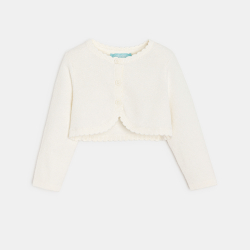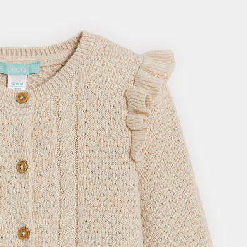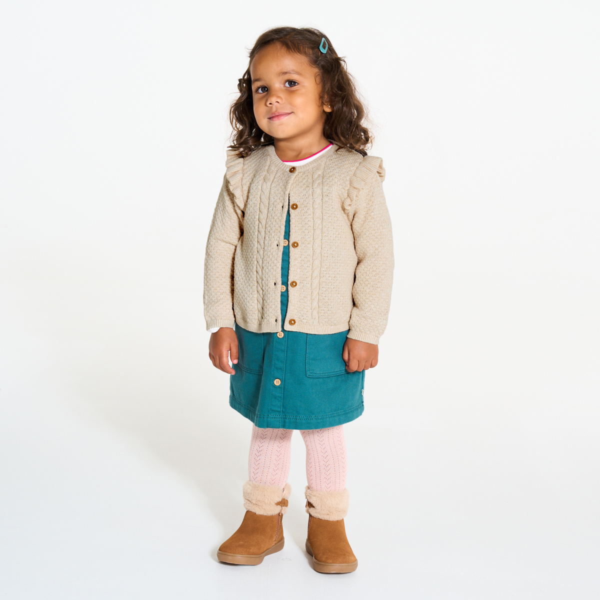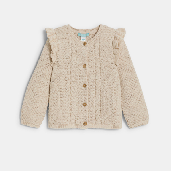 Il réchauffe les filles et assure un style élégant : ce gilet boutonné en tricot propose un joli jeu de mailles pour un effet graphique original. Volants aux épaules et encolure arrondie.