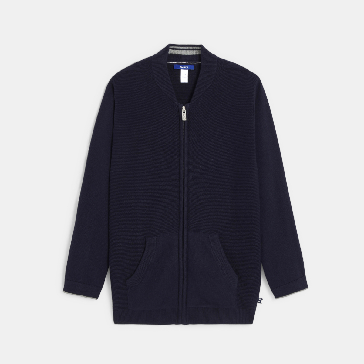 Les codes du blouson teddy s'invite sur ce long gilet zippé : ça change et ça donne belle allure aux garçons. Maille douce et souple point mousse et point jersey mélangés. Coupe légèrement resserrée à la base. Col rond côtelé. Ouverture zippée. Manches longues. 2 poches façon kangourou. Bords-côtes.