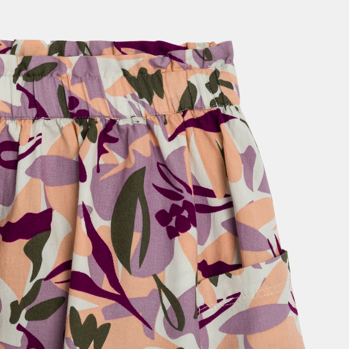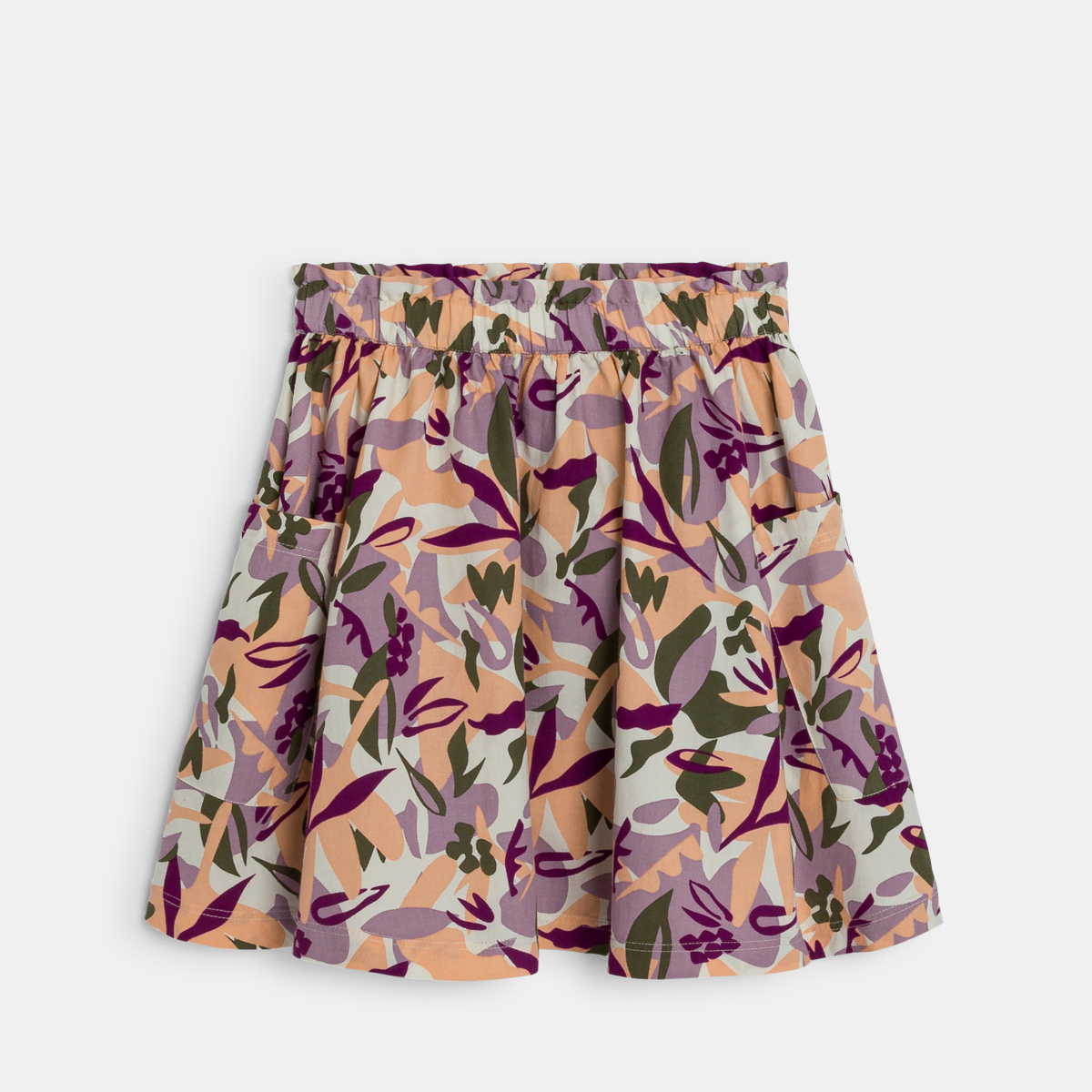 Dansante & multicolore : cette jupe évasée fait le bonheur des filles en perpétuel mouvement ! Twill de coton et viscose tout doux, très fluide. Taille élastiquée pour un enfilage facile. Base arrondie. Longueur dessus genou.