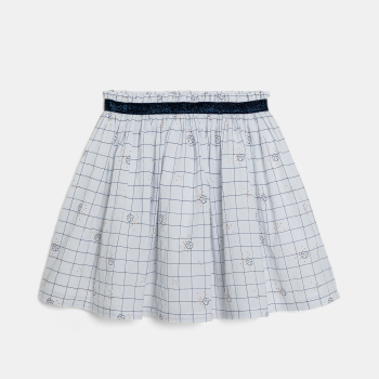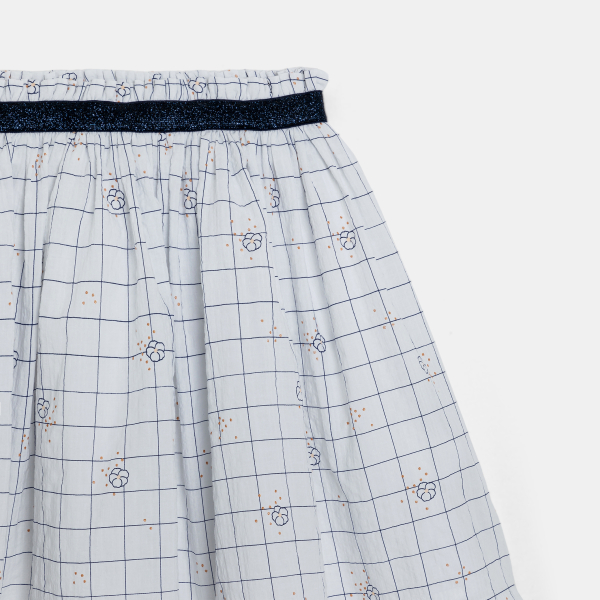 Une pointe de chic une note de fantaisie... et un grand succès à venir chez les filles ! Cette jupe jupon évasée présente des carreaux fenêtres et des petits pois irisés près des dessins de fleurs. Taille élastiquée. Longueur dessus genou. Doublure en voile de coton pour un effet volume. Finition piquée.