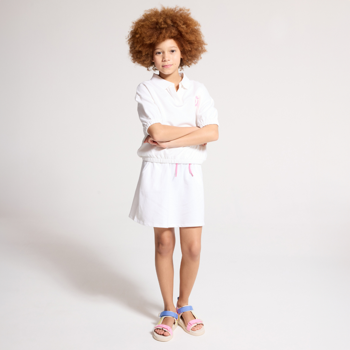 Description Super confortable et très jolie à porter ! Cette jupe courte et évasée cultive son style sportswear : elle est en molleton doux. Taille élastiquée, cordon à nouer. 2 poches devant et 2 poches dos avec motif imprimé en détail. Base arrondie surpiquée.